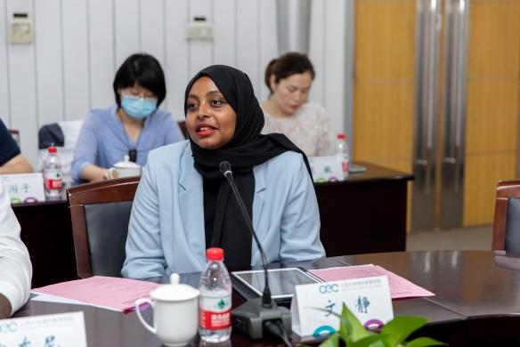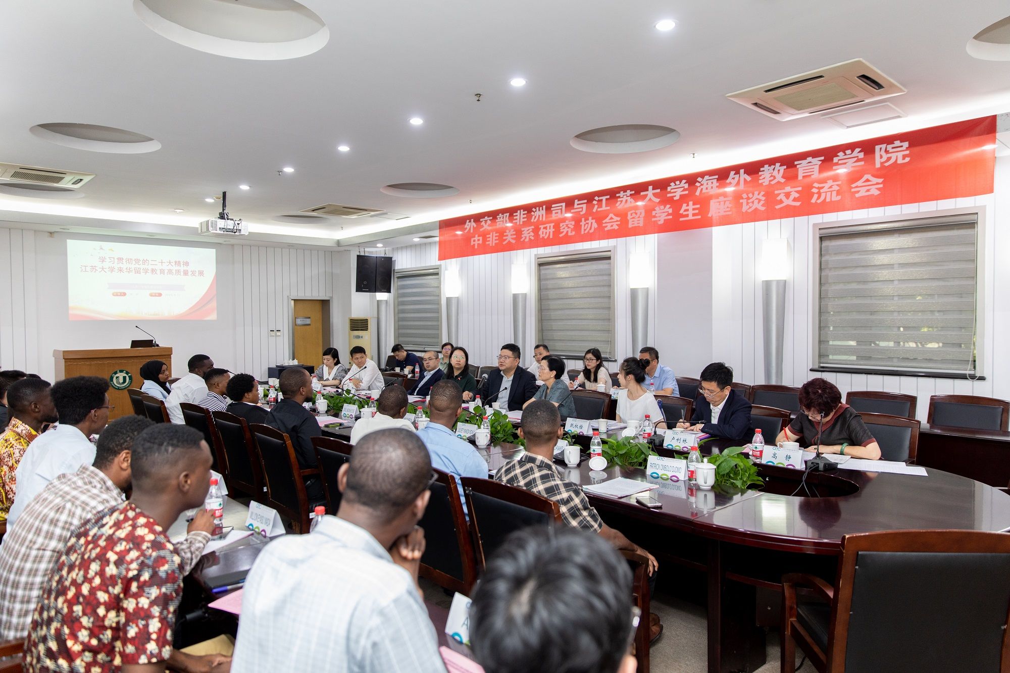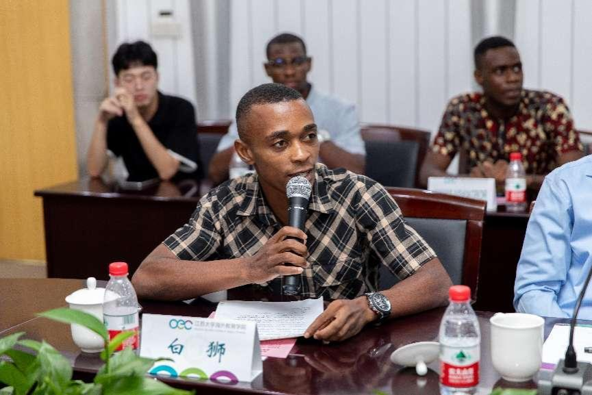 8月11日,外交部非洲司副司长周平、江苏省人民政府外事办公室副主任杨菁一行应邀来校,与海外教育学院中非关系研究协会来华留学生代表交流座谈。镇江市人民政府外事办公室主任卢利林,我校国际合作与交流处处长潘剑锋、海外教育学院直属党支部书记黄婷、院长高静等参加座谈会。座谈会由高静主持。