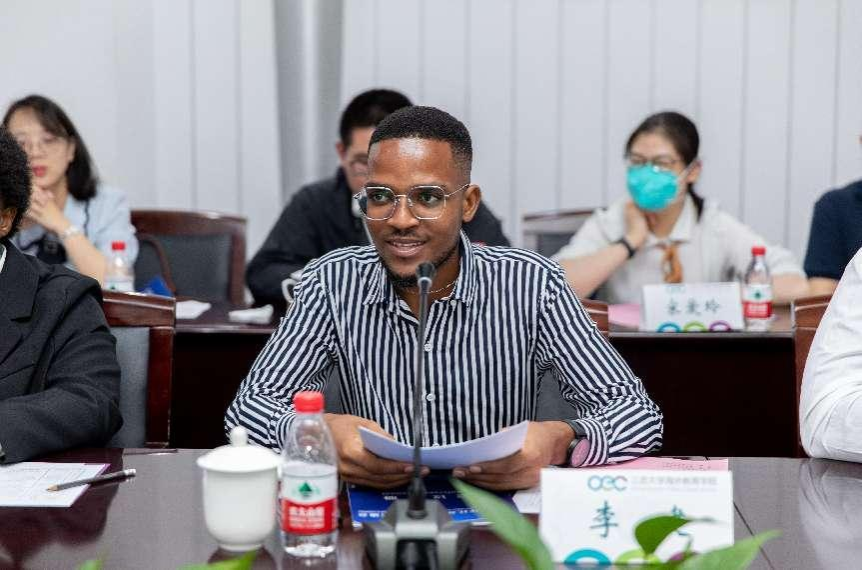 留学生兴趣团组中非关系研究协会的十余名留学生用流利的汉语参会交流。坦桑尼亚的文静立志成为一名优秀的儿科医生,希望将在球速体育学习到的先进医学知识带回祖国,救助家乡的青少年儿童。博茨瓦纳的刘备用亲身经历分享了对”修身齐家治国平天下“的理解,立志学成回国后借鉴中国智慧、中国方案到政府工作。莱索托的朋家表达了自己对中国传统文化的热爱,现场声情并茂地朗诵了唐朝古诗《春江花月夜》。喀麦隆的白狮讲述了在校园的学习、体育、文艺等活动,一首激情高昂的《走进新时代》将座谈会气氛推向高潮。