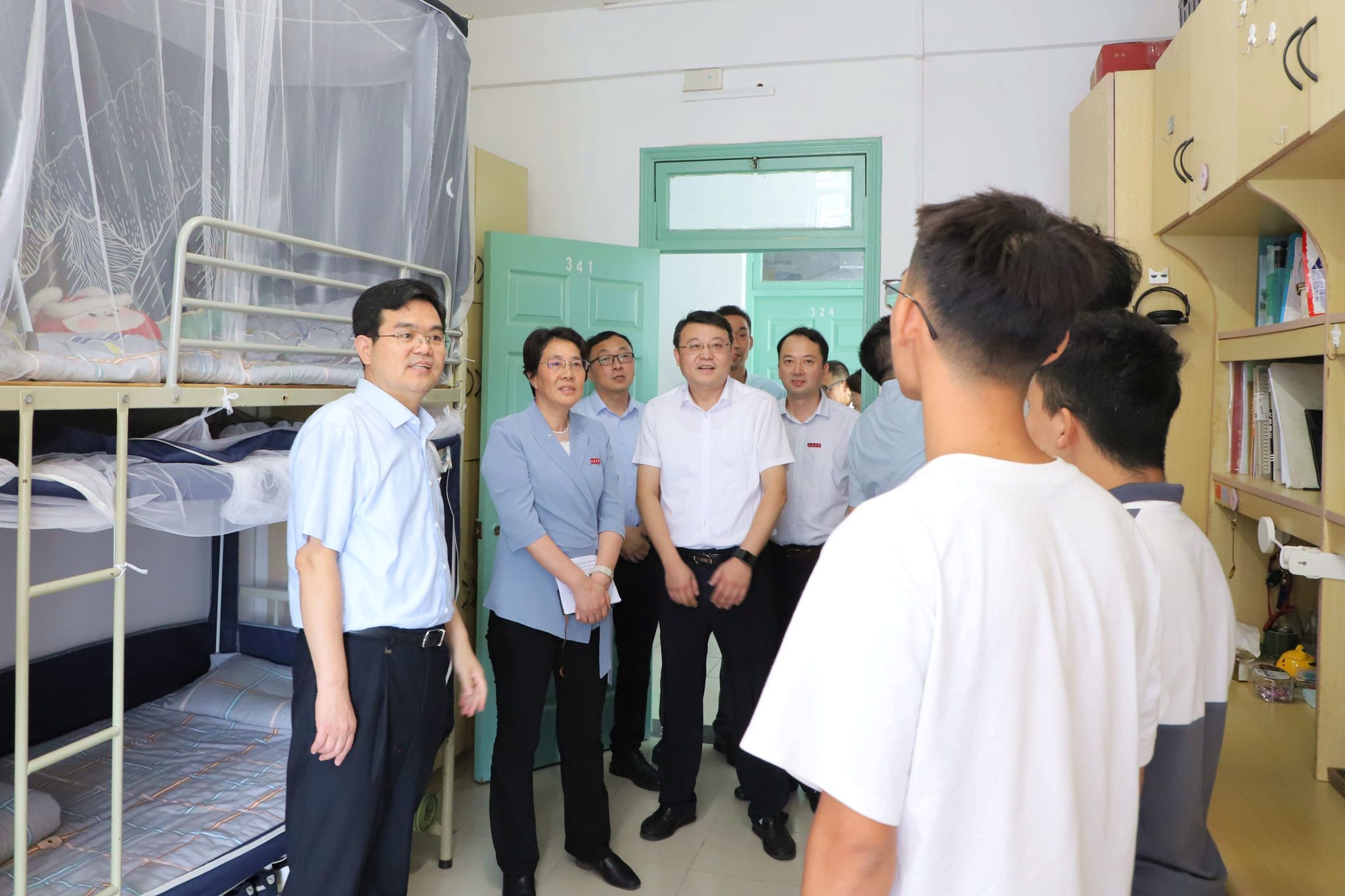 在学生宿舍,校领导与返校学生亲切交流,详细询问学生返校和假期情况,希望同学们调整好状态,迎接新学期。校领导详细了解了暑期学生家庭受灾情况,鼓励学生积极面对困难,同时要求相关部门与学院关心关爱学生,帮助家庭经济困难学生顺利渡过难关。