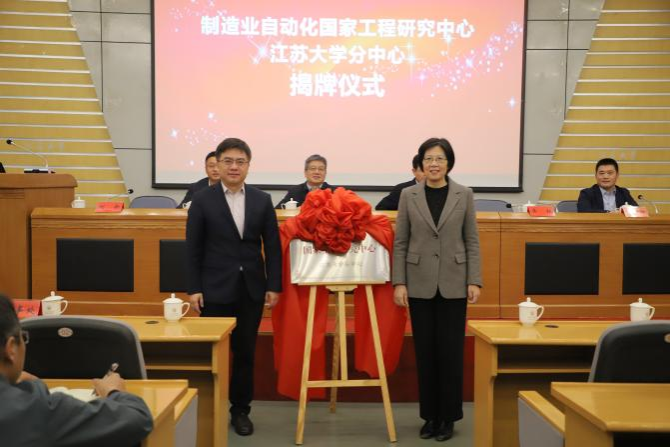 李红和刘新共同为制造业自动化国家工程研究中心球速体育分中心揭牌。