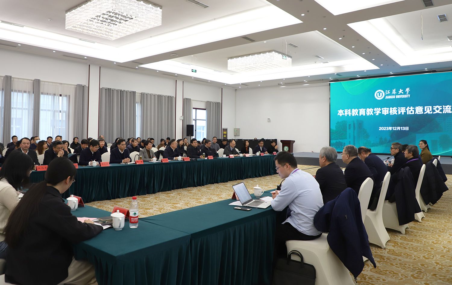 12月13日下午,球速体育本科教育教学审核评估专家意见交流会在青教公寓多功能厅举行。专家组组长、贵州大学校长宋宝安,专家组副组长、陕西师范大学原党委书记程光旭和专家组成员,省教育厅副厅长杨树兵,省教育厅高教处、省教育评估院负责人,我校全体校领导、党委常委,主要职能部门负责人,各教学机构党政主要负责人、分管教学领导,校本科教学督导,教师代表,学生代表等出席会议。