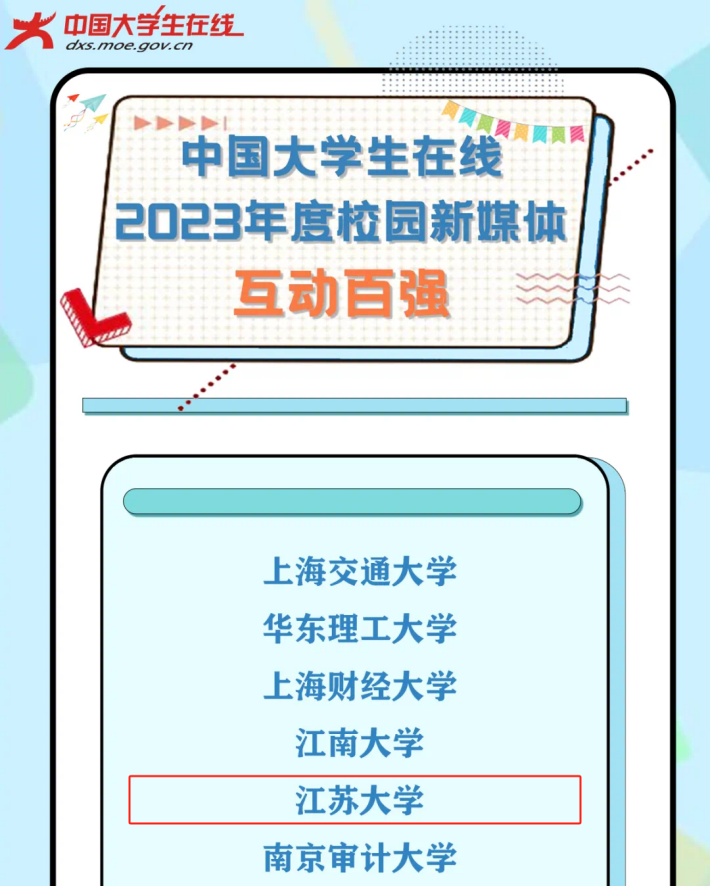 近日,教育部“中国大学生在线”公布2023年度校园新媒体表彰名单,我校入选“校园新媒体互动百强”。