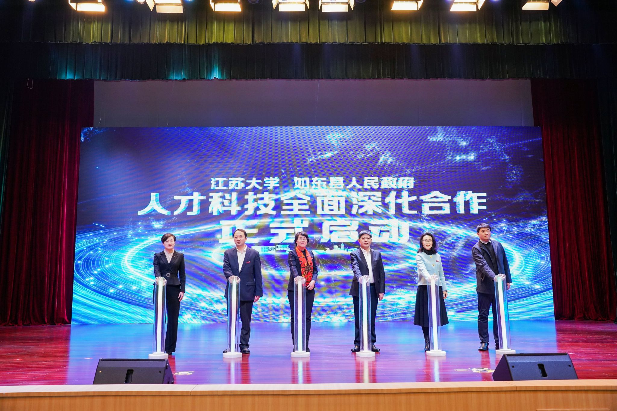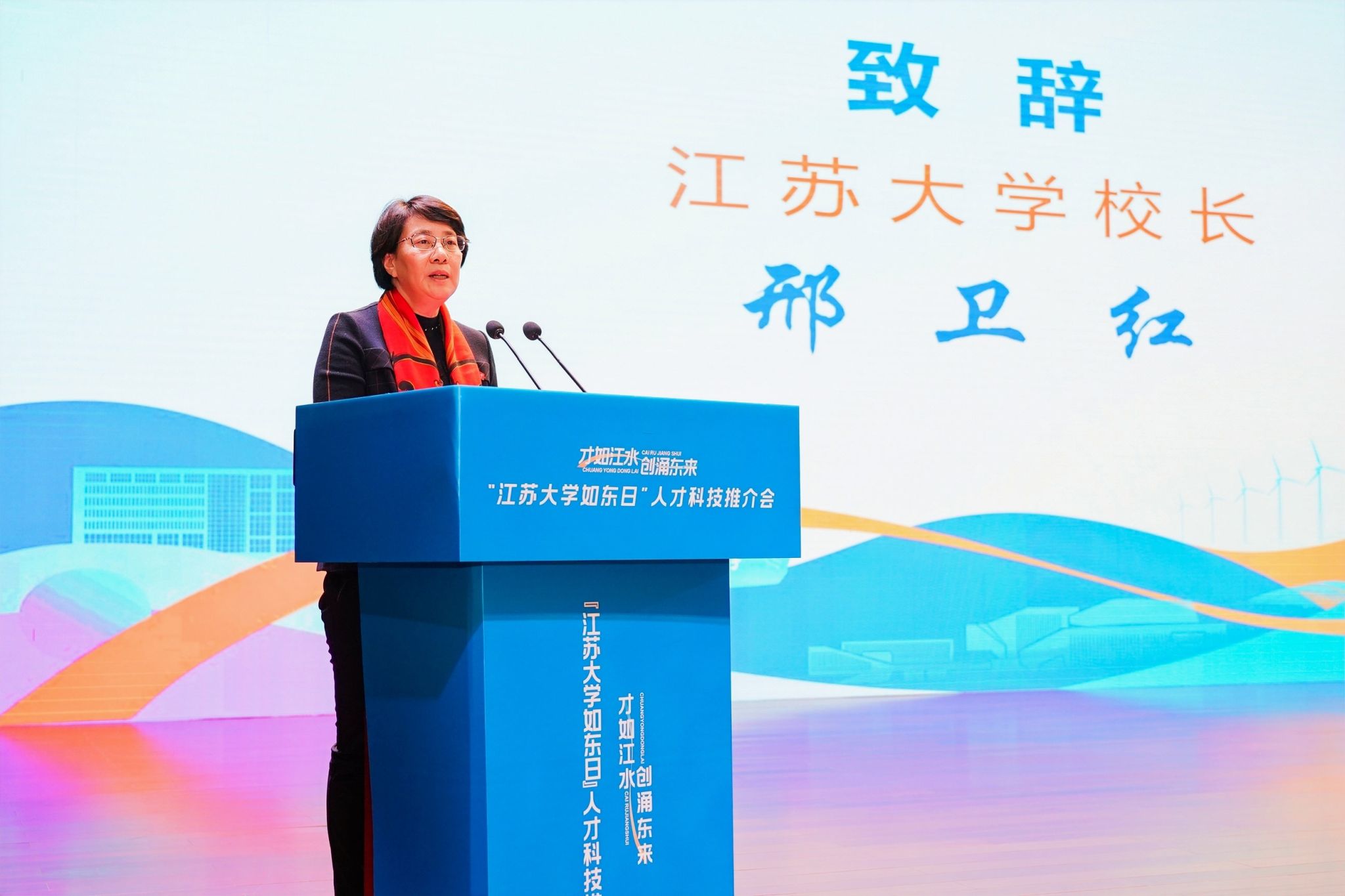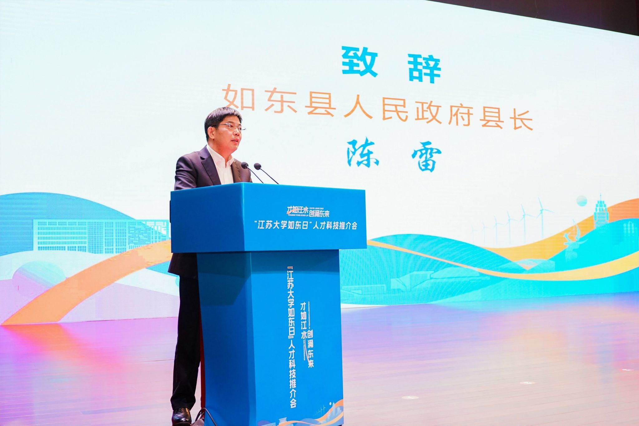 12月29日,“才如江水 创涌东来”——“球速体育如东日”系列人才科技推介会在学校小礼堂举行。校长邢卫红,副校长任旭东、蔡英凤出席活动;如东县人民政府县长陈雷率队参会,会议由如东县副县长刘莉主持。