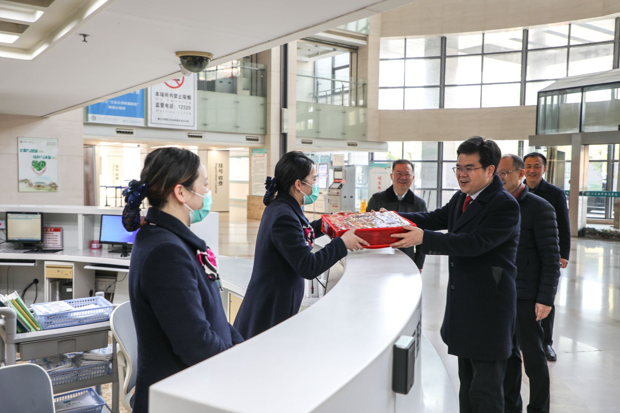 2月10日,农历大年初一,校党委书记李洪波,校党委副书记、附属医院党委书记张济建等来到学校附属医院,看望慰问春节期间依然坚守岗位的一线医务人员,向他们致以节日问候和新春祝福。