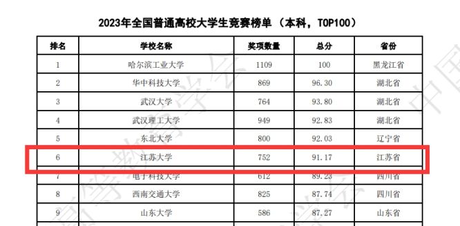 3月22日,中国高等教育学会发布2023年全国普通高校大学生竞赛排行榜,全国共有1218所本科院校进入榜单。我校位列《2023年全国普通高校大学生竞赛榜单(本科,TOP100)》第6名,较上一年度榜单提升8位;位列《2019-2023年全国普通高校大学生竞赛榜单(本科,TOP300)》第30名,较上一轮榜单提升26位。