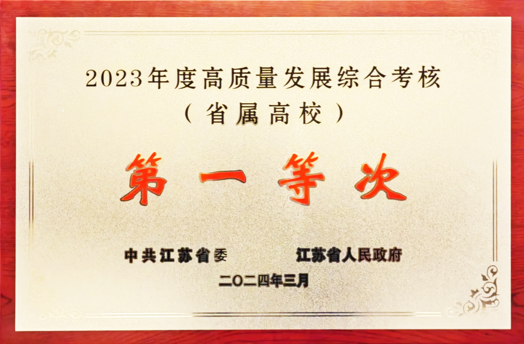 这一年,学校高质量党建引领事业高质量发展再上新水平,办学关键指标持续实现新突破。新增2个ESI前1%学科,ESI综合排名列全国第42位。1个团队入选“全国高校黄大年式教师团队”,实现历史性突破。入选国家一流课程15门,获国家教学成果二等奖3项。获评中国专利金奖1项(全国仅5所高校获奖,江苏唯一)、江苏省科学技术奖14项(省属高校第2),在Science上发表论文2篇。连续4年入围全国科技创新高校50强,新增国家数字农业装备(人工智能和农业机器人)创新分中心。蝉联“挑战杯”国赛“优胜杯”(连续九届),再获中国国际大学生创新大赛、“挑战杯”创业计划竞赛全国金奖,在2023全国普通高校学科竞赛排行(本科TOP100)中列全国第14位、江苏第1位。以A等优秀成绩通过来华留学生高等教育质量再认证,获得8年认证有效期(全国共7所,地方高校全国唯一)。获评首批全国健康学校建设单位、全国资源节约型绿色校园、省级书香校园建设示范点、省高质量平安校园建设高校,办学治校满意度、师生获得感达到新水平。