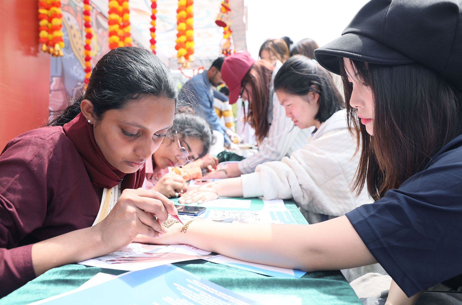 各国文化展区精彩纷呈,现场观众手持“护照”到各国的展台“打卡”,欣赏丰富绚丽的服饰和工艺品,品尝特色美食,参加互动游戏,感受文化的碰撞与交融。镇江市人民政府外事办公室、东华汽车实业有限公司、扬州腾飞电缆电器材料有限公司、中科浩博国际教育科技(北京)有限公司等单位也搭台参展,进行中国传统文化、防诈反诈及校企合作等宣传。