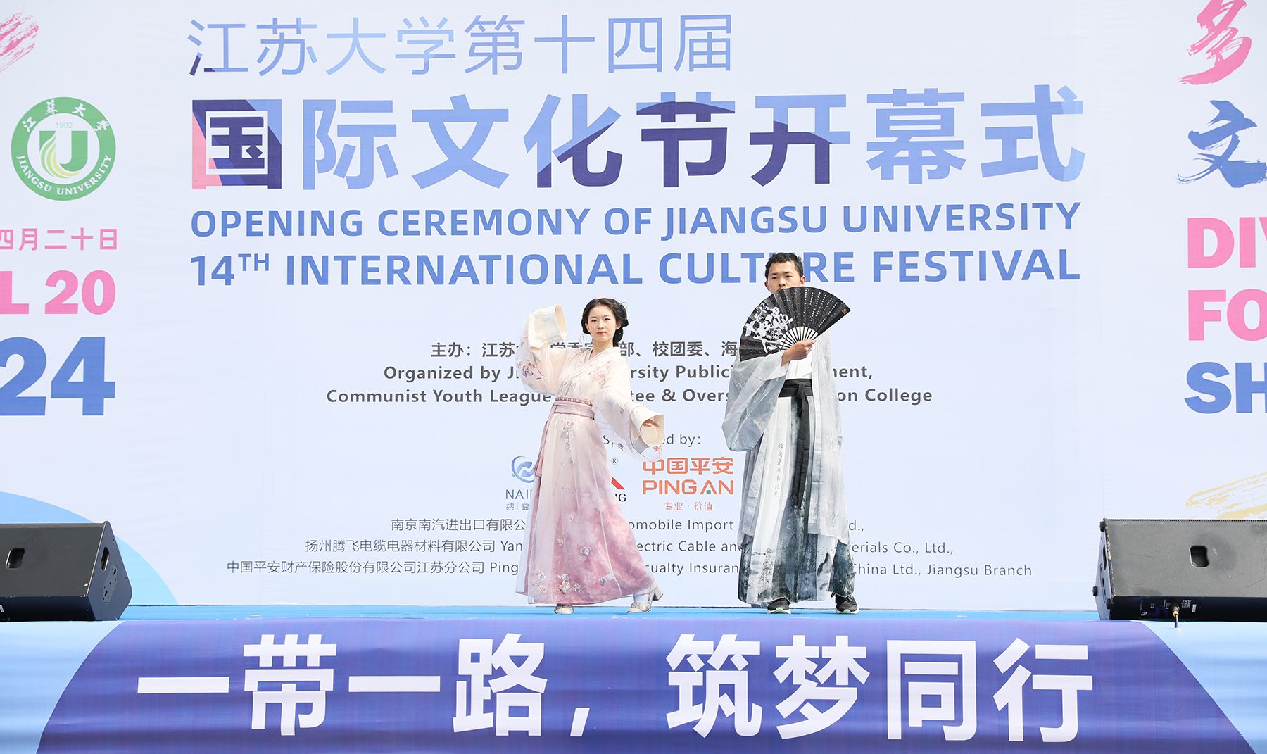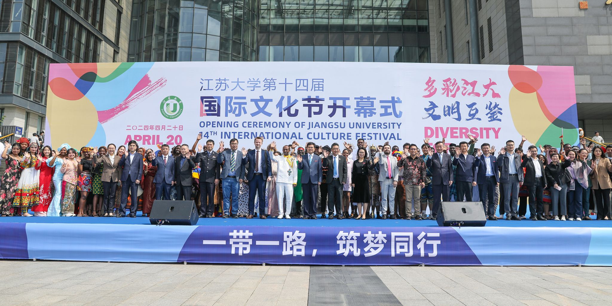 4月20日,球速体育第十四届国际文化节开幕式在图书馆广场举行。本届文化节主题是“多彩球速体育,文明互鉴”,来自50多个国家的1400余名来华留学生和5000余名中国师生、市民参加活动。