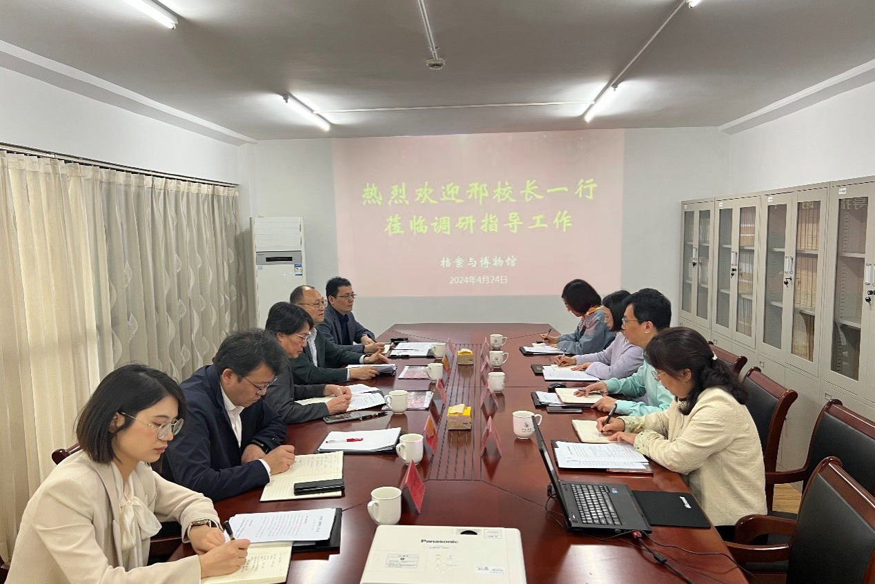 4月24日上午,校长邢卫红、校党委副书记张济建调研档案与博物馆工作。