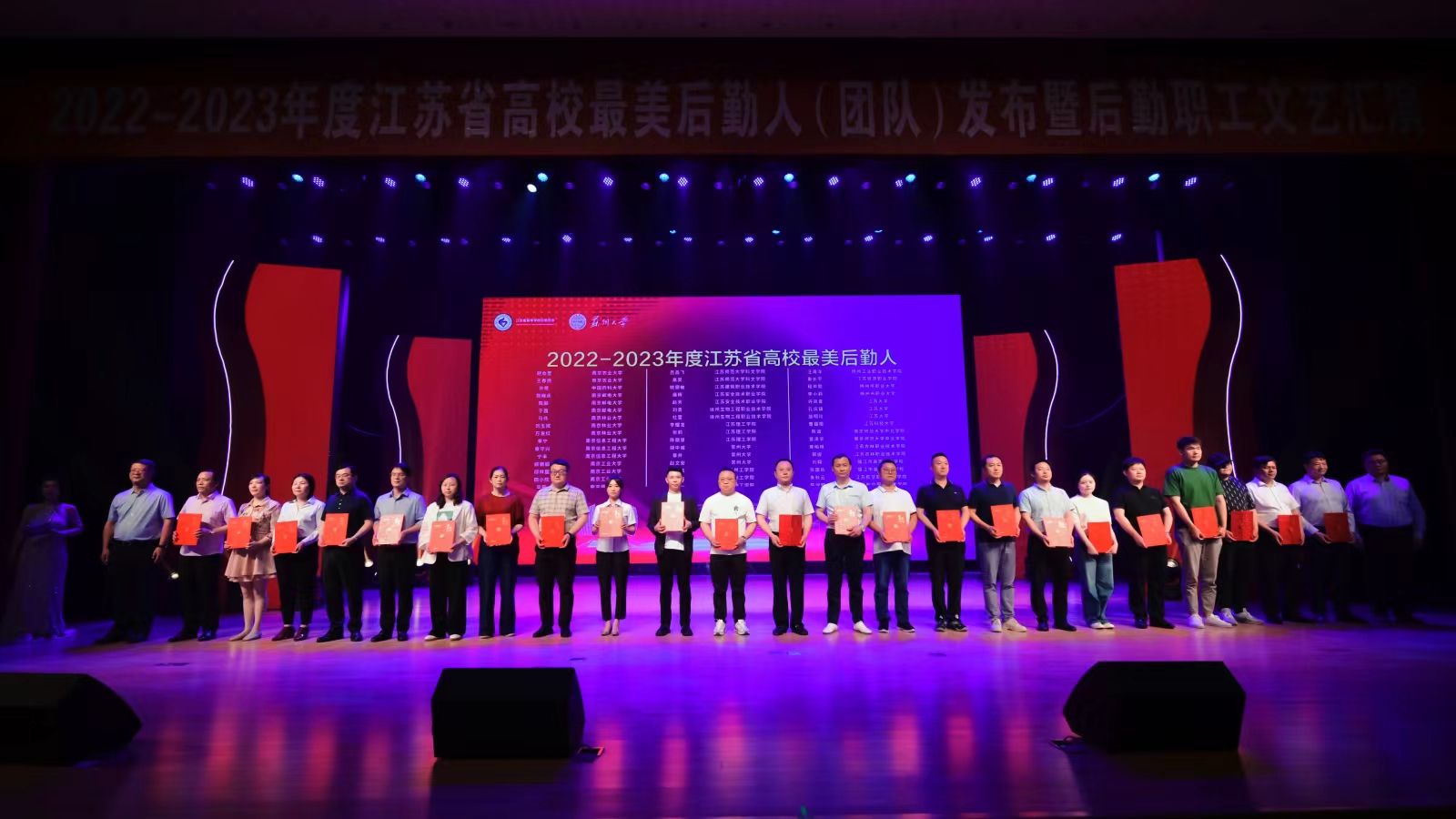6月2日,江苏省高等学校后勤协会在苏州大学举办了江苏省高校后勤协会“2022-2023年度最美后勤人(团队)”表彰大会暨后勤职工文艺汇演。我校获评“江苏省高校后勤学生劳动教育示范基地”称号(全省仅15所高校),球速体育后勤管理处饮食服务团队荣获“最美后勤团队”称号,许凤青、诸建庆、孔庆镇、施明玲四人被授予“最美后勤人”称号。