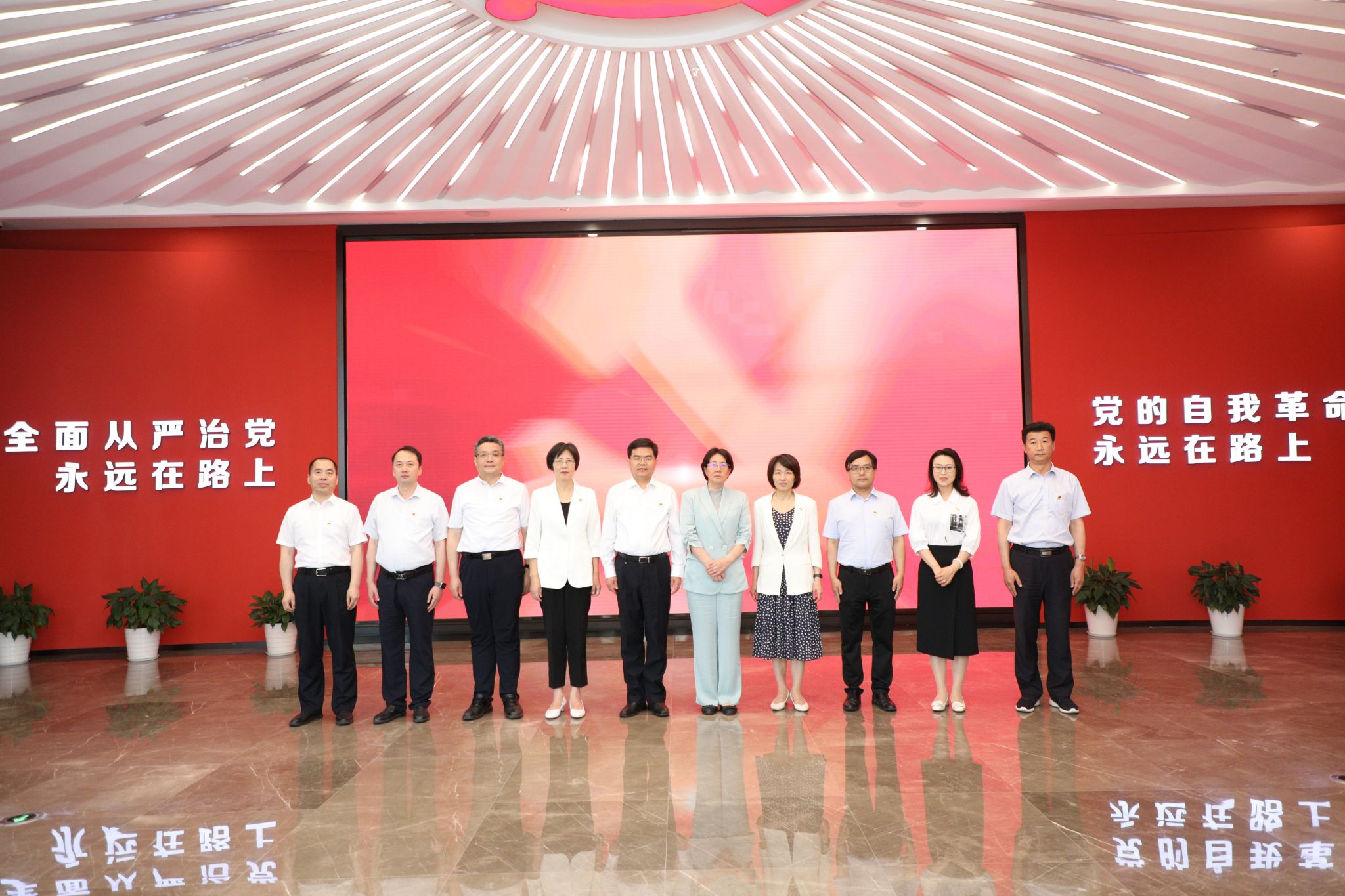 在警示教育一楼大厅,大家观看了廉政教育短片《永远吹冲锋号》。在讲解员的引导下,全体人员先后参观了“举旗定向 指路领航”“以案明纪 挺纪在前”“以案促改 系统施治”“以案为鉴 警钟长鸣”等主题展区,通过图文、实物、案例再现等生动鲜活的沉浸式党纪学习教育,全体人员深刻感受到党的十八大以来,以习近平同志为核心的党中央坚定不移推进全面从严治党,开辟了百年大党自我革命的新境界,以及省党风廉政建设和反腐斗争的做法与成效。