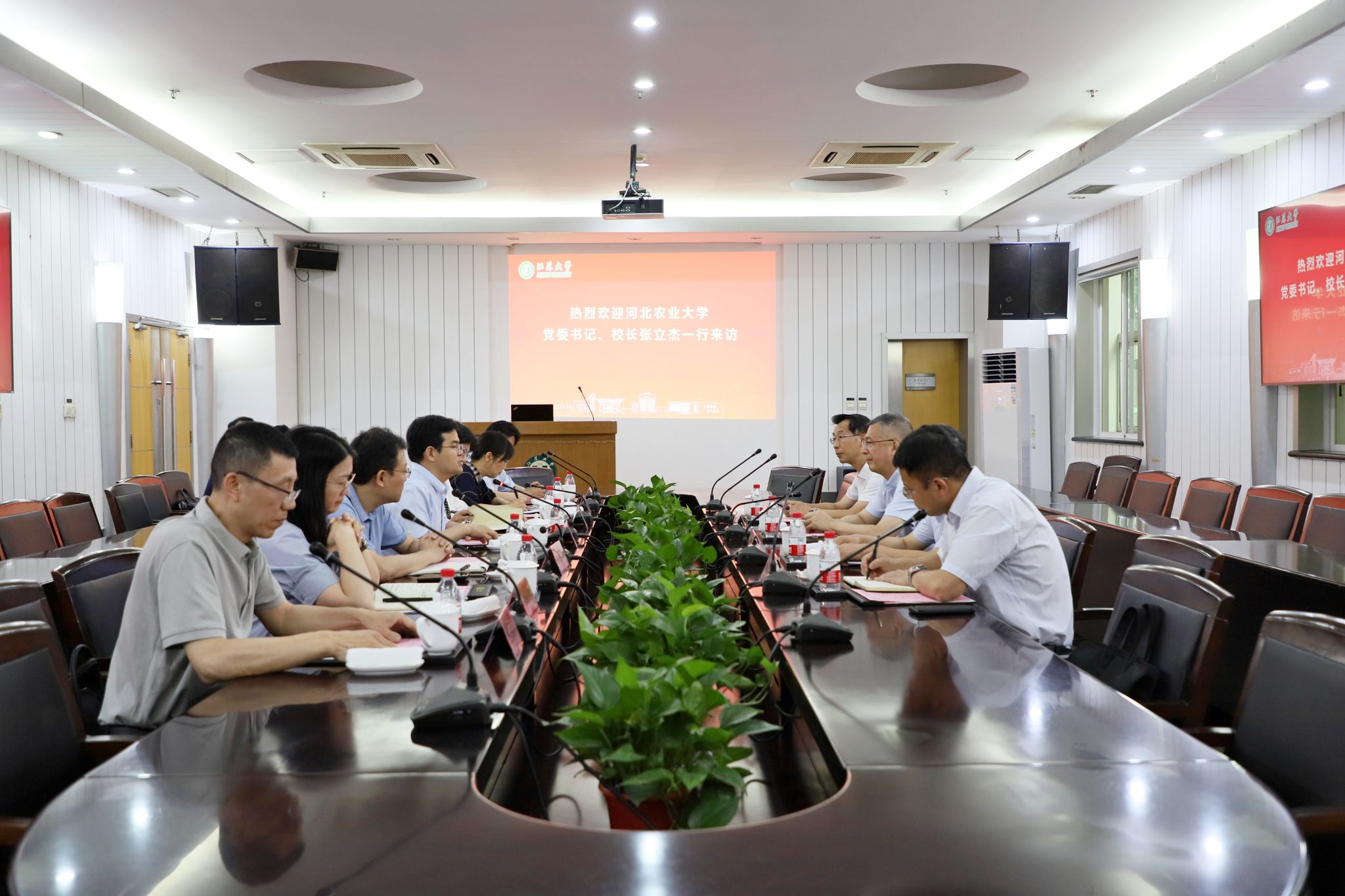 6月25日,河北农业大学党委书记、校长张立杰一行来校交流。校党委书记李洪波、副校长李红接待了张立杰一行。