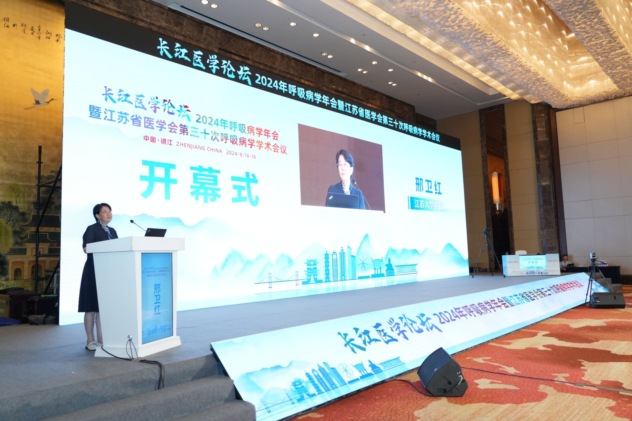 中国工程院院士、中国工程院副院长、中国医学科学院院长、北京协和医学院校长王辰,上海交通大学医学院附属瑞金医院党委书记、中华医学会呼吸病学分会主任委员瞿介明,镇江市人民政府副市长武鸣,镇江市卫生健康委员会主任杨毅,球速体育校长邢卫红,球速体育党委副书记、附属医院党委书记张济建,省医学会呼吸病学分会主委宋勇、前任主委殷凯生、黄茂、黄建安,候任主委姚欣及国内知名专家周彩存、代华平等出席年会开幕式。