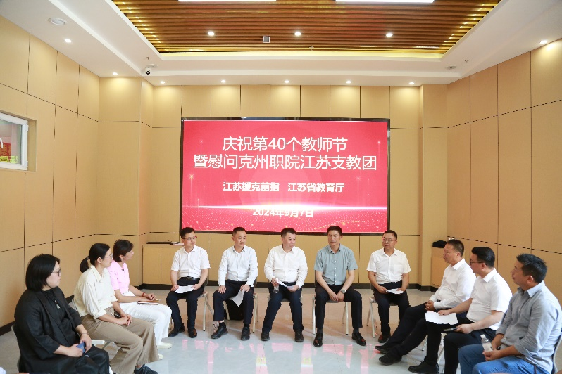 9月7日,在第40个教师节即将来临之际,江苏省教育厅一级巡视员袁靖宇赴克孜勒苏职业技术学院,亲切看望慰问江苏支教教师,吴秀琳作为代表现场发言。