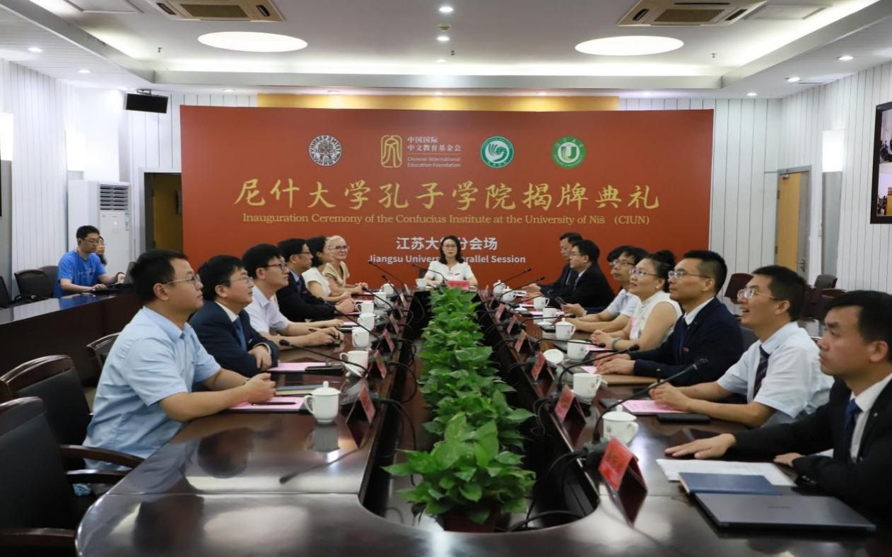 李明、优万娜·米蒂奇、伊万娜·契托科维奇、德拉格安·安蒂奇、邹小波等共同上台剪彩,并为尼什大学孔子学院揭牌。李明代表中国驻塞尔维亚大使馆向尼什大学孔子学院赠送中文学习教材1600余册/套,电子教材近700盒/套。与会嘉宾还共同见证了尼什大学孔子学院与中国电建集团共建的“中国书架”正式启用、与塞尔维亚紫金铜业和波尔文理中学三方签约《汉语教育合作备忘录》及共建“尼什孔子学院紫金中文学习中心”,与山东高速国际合作公司签订校企合作协议。