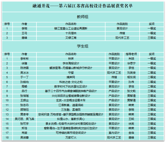 我校师生在第六届江苏省高校设计作品展中喜获佳绩