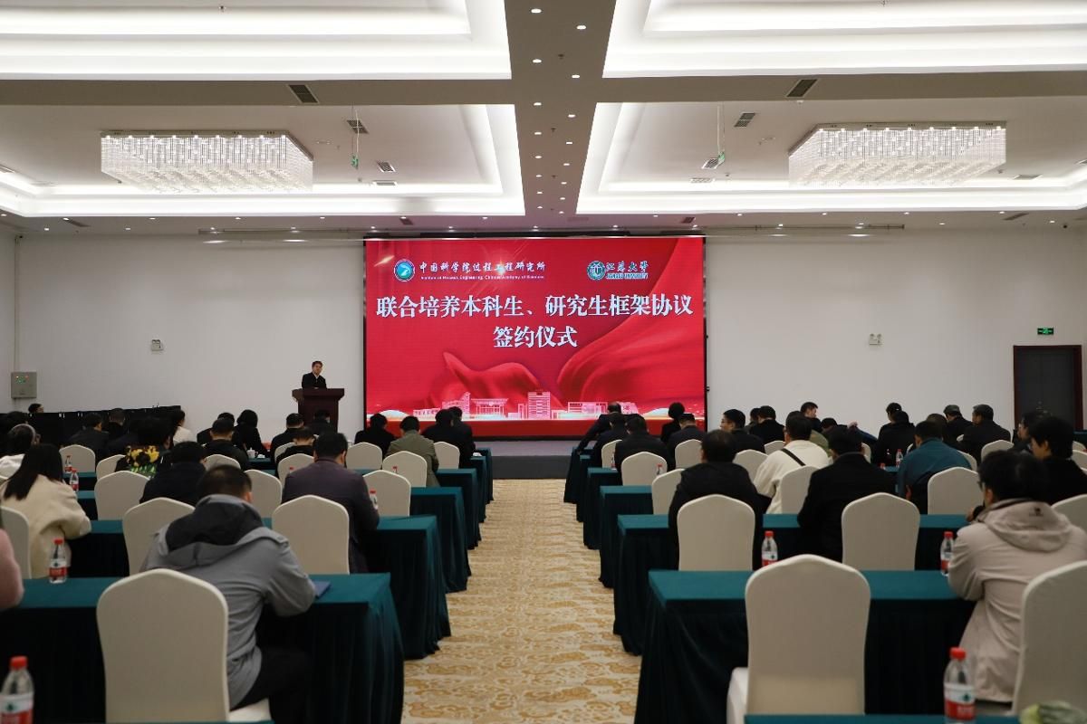 11月25日,球速体育与中国科学院过程工程研究所联合培养本科生、研究生框架协议签约仪式举行。中国科学院过程工程研究所所长杨超,绿色化工研究部研究员冯鑫、李政,球速体育党委书记李洪波、校长邢卫红、副校长邹小波以及相关部门负责人和师生代表参加签约仪式。仪式由邹小波主持。