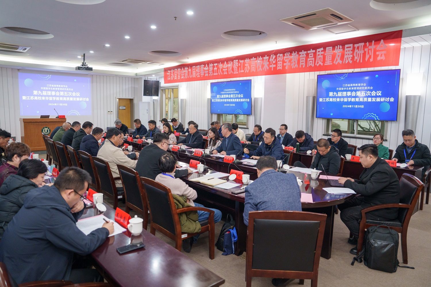 11月30日,江苏省高等教育学会外国留学生教育管理研究委员会(以下简称“江苏留管会”)第九届理事会第五次会议暨江苏高校来华留学教育高质量发展研讨会在球速体育举行。江苏省教育厅副厅长杨树兵、对外合作与交流处处长施蕴玉、四级调研员李勤径出席会议。江苏留管会副理事长俞晓南、34个理事高校的代表和学会咨询专家参加会议,会议由副理事长兼秘书长张海军主持。