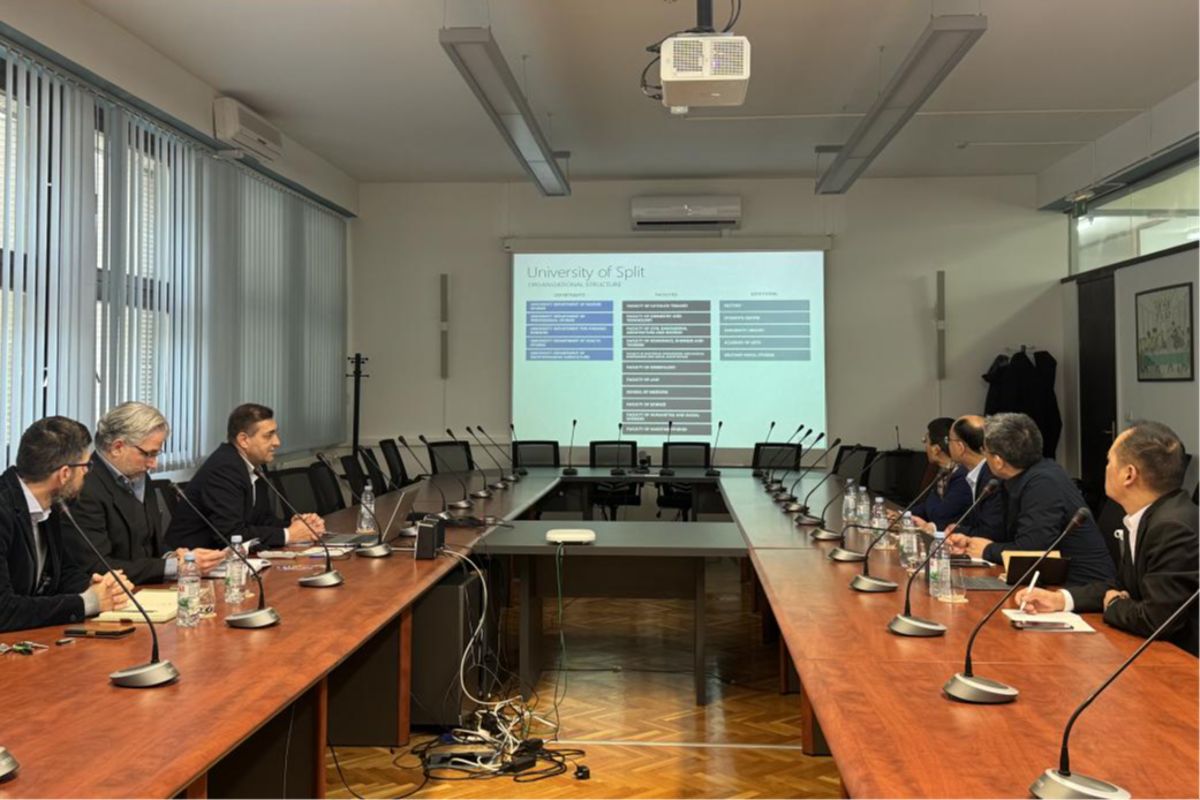 在克罗地亚斯普利特大学期间,副校长伊戈尔·耶尔科维奇对球速体育一行的来访表示热烈欢迎,向代表团介绍了斯普利特大学的历史沿革及学校发展,就两校在推进人才培养、科研合作、教师及学生互访等领域合作表达了期待。