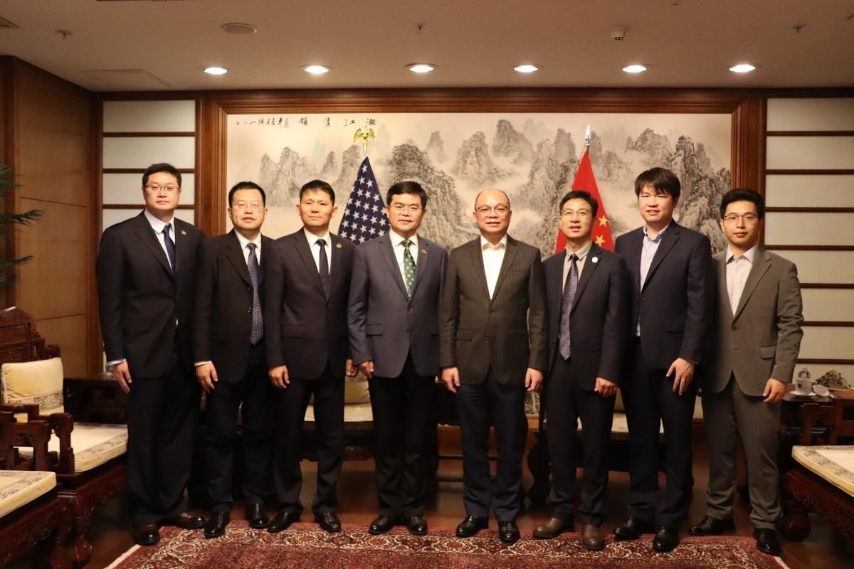 在美期间,代表团一行还拜访了中国驻纽约总领事馆,教育处参赞余有根会见了代表团。李洪波介绍了球速体育现状及发展态势,并重点介绍了学校与美国高校的教育交流合作情况。余有根给予高度肯定,并表示将全力支持我校进一步拓展与美国本科院校的合作。