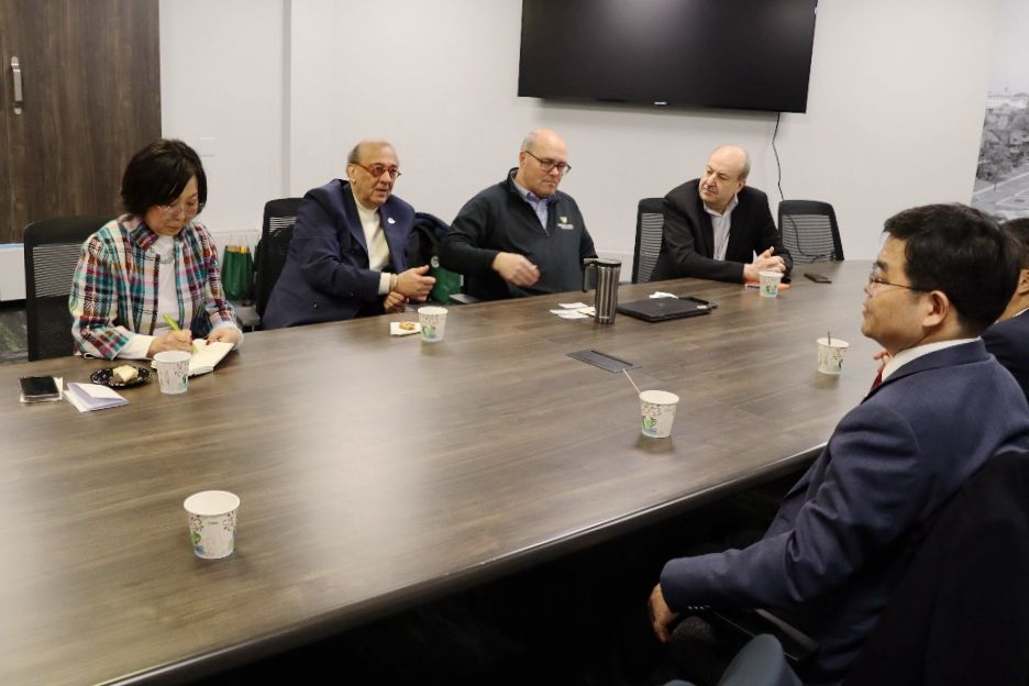 代表团和修华静、韦恩州立大学工程学院院长阿里·阿卜勒马利、机械工程系主任纳比尔·查尔胡布、环境工程系主任肖恩·麦克默里进行了深入会谈,阿里·阿卜勒马利提出了“4+0”的升学培养方案和对球速体育学生的优惠政策。