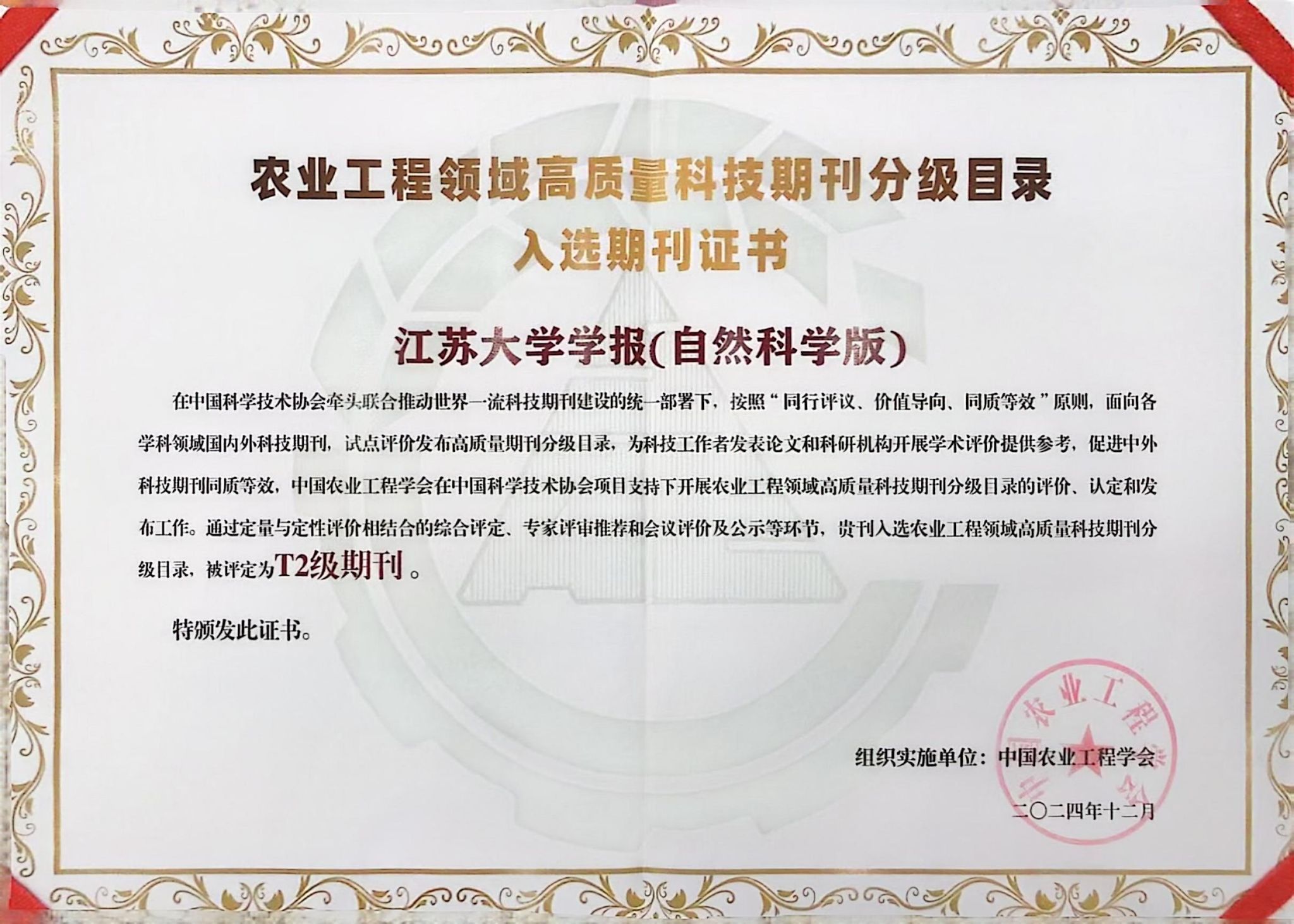 近日,中国农业工程学会在中国农业科学院国家农业图书馆召开发布会,正式发布其编制的“农业工程领域高质量科技期刊分级目录”,我校主办的《排灌机械工程学报》《球速体育学报(自然科学版)》双双入选,分别位列T1级和T2级。