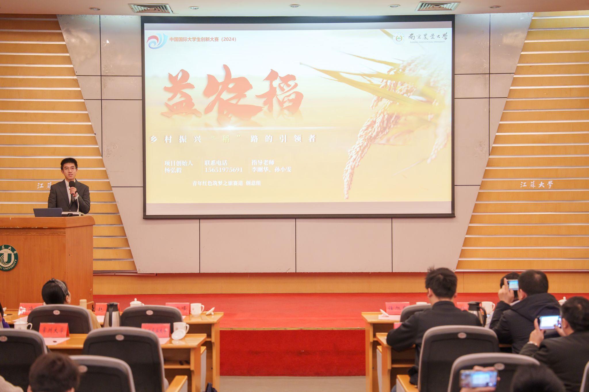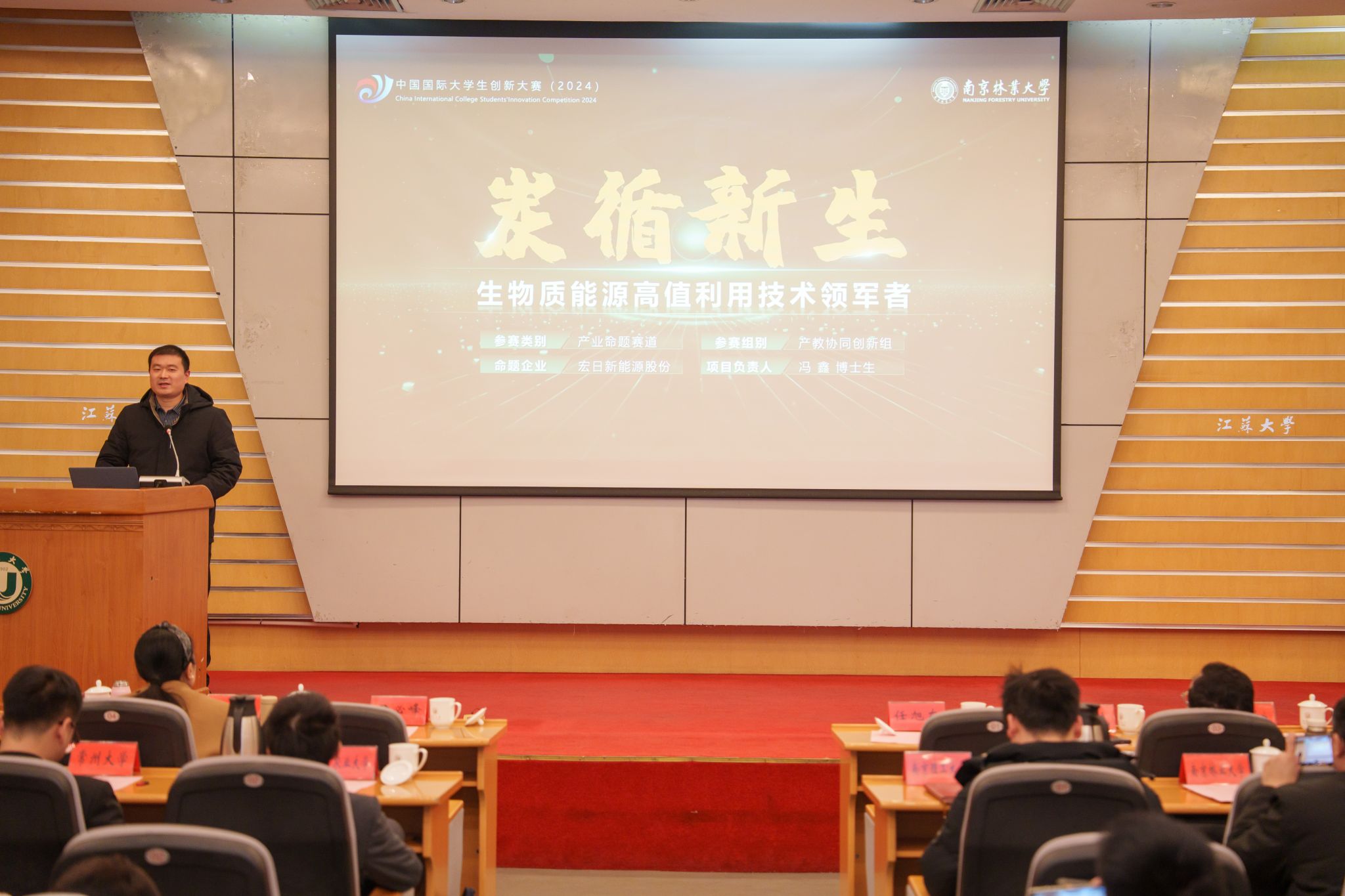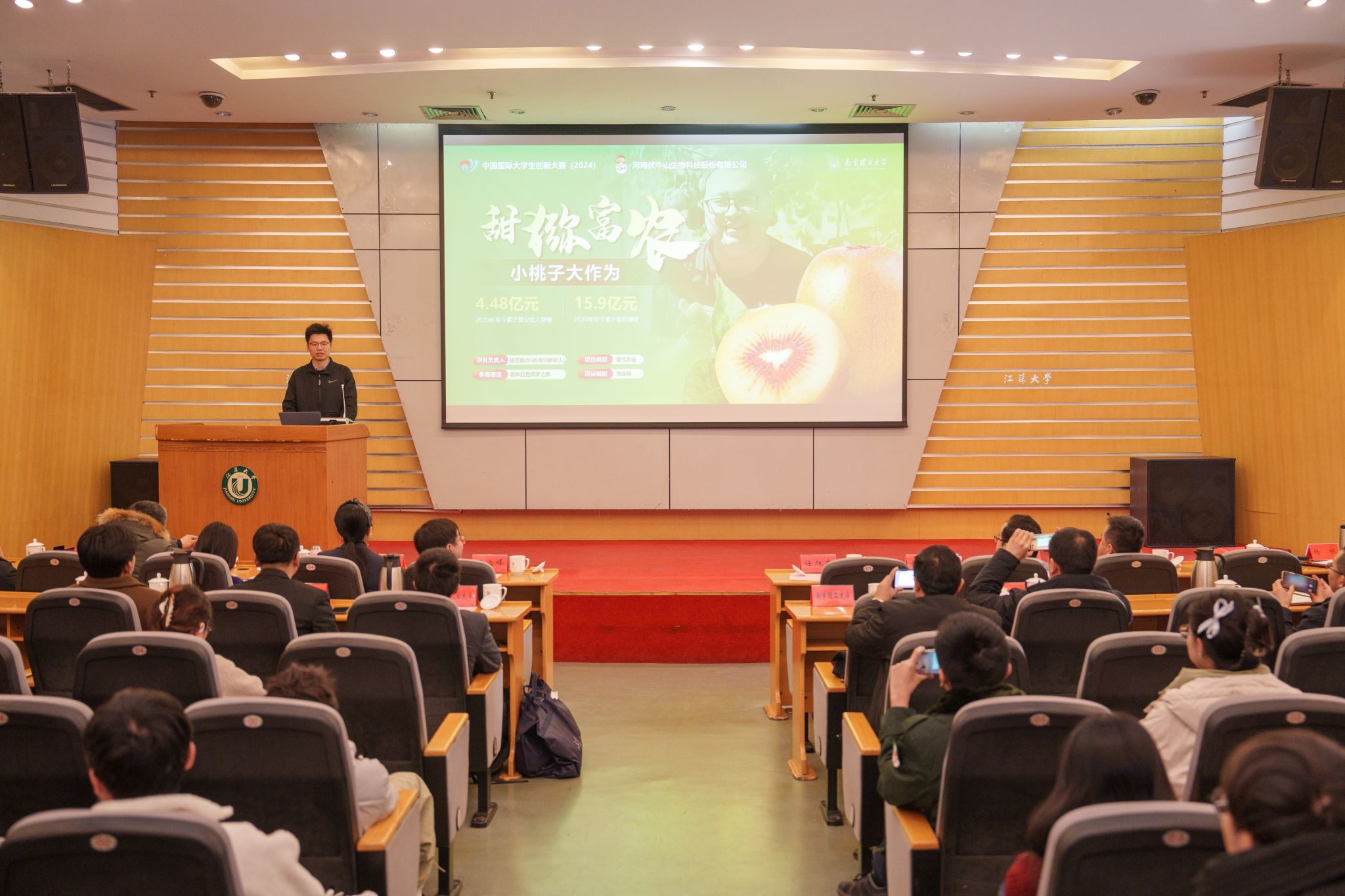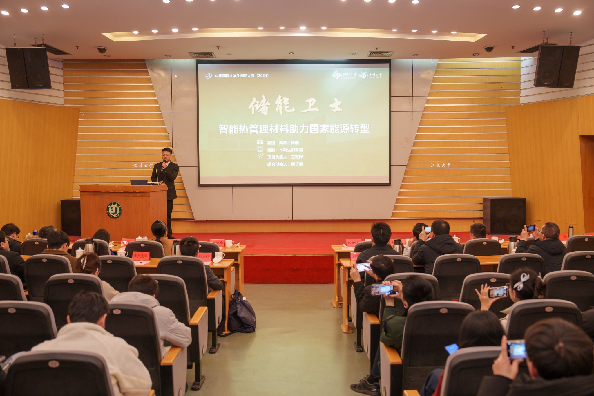 仪式上,南京理工大学《小桃子大作为》、南京农业大学《益农稻——乡村振兴“稻”路的引领者》、常州大学《储能卫士——智能热管理材料助力国家能源转型》、南京林业大学《高热耗能工业园区生物质固碳能源热效率提升方案》等2024年中国国际大学生创新大赛国赛金奖项目进行示范路演。项目立足国家战略需求,突破行业技术瓶颈,为我校师生提供了可借鉴的“敢闯会创”实践范本。