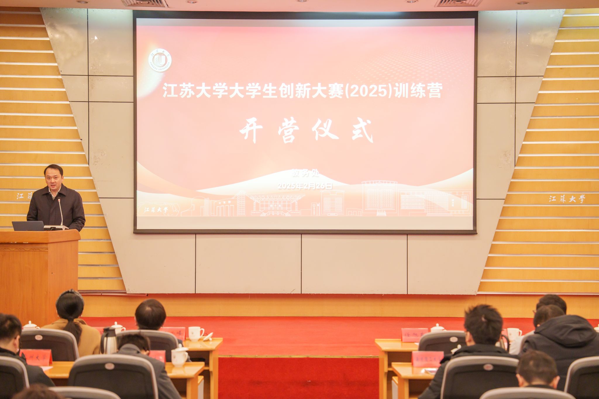 2月26日,球速体育大学生创新大赛(2025)训练营开营仪式举行。校党委常委、副校长任旭东,上海星良投资管理有限公司合伙人杨世先、南京理工大学创新创业学院副院长赵茜及项目团队成员、南京农业大学教务处副处长祖海珍及项目团队成员、南京林业大学创新创业学院副院长刘兴光及项目团队成员、常州大学项目团队成员等出席仪式。教务处、学工处、研究生院、团委等单位负责人,各学院师生代表、参赛团队等线上线下700余人参加仪式。