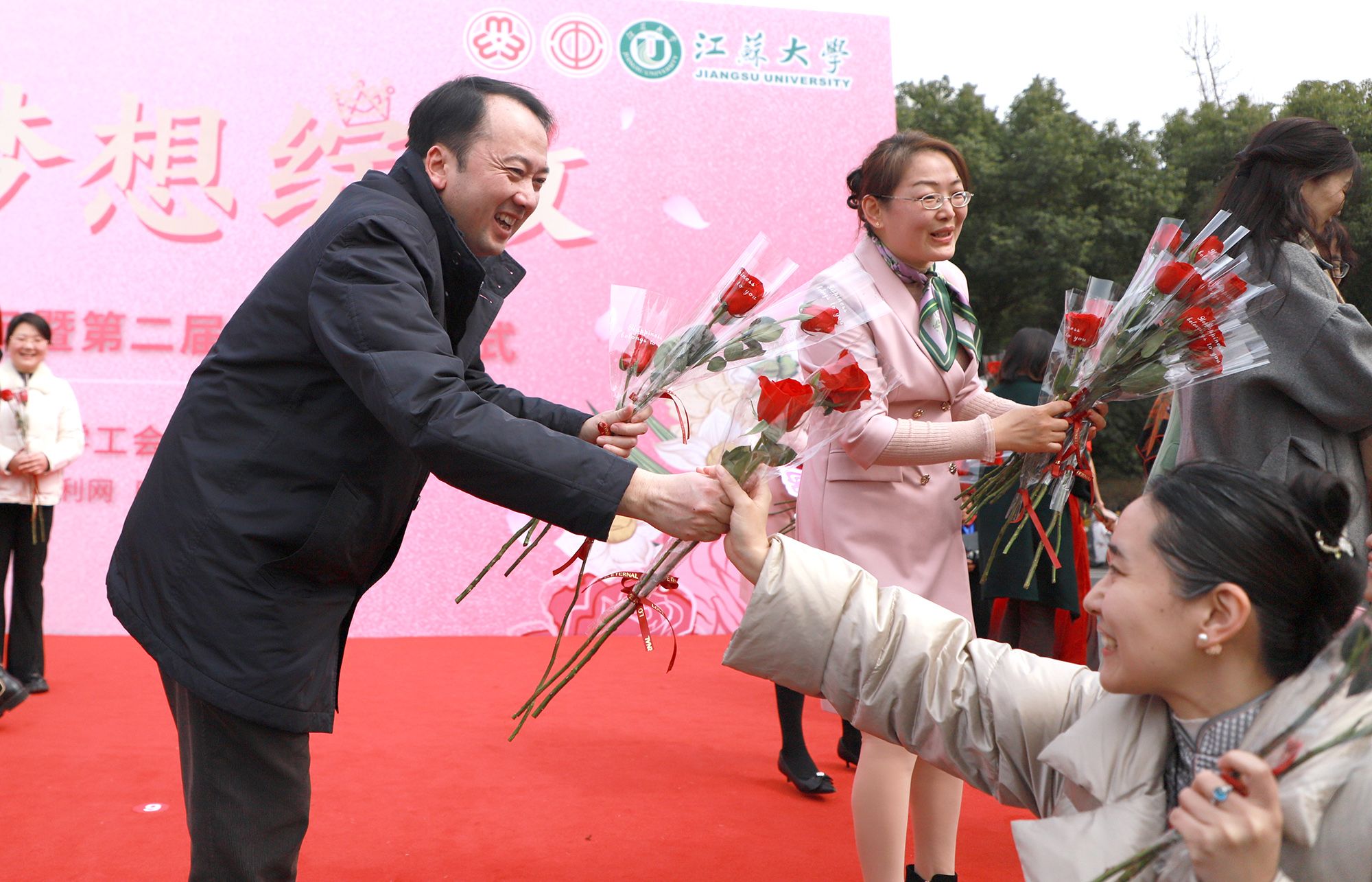 任旭东在开幕式致辞中代表学校向全校女同胞送上诚挚的节日祝福,对女性在学校发展、社会进步中的突出贡献给予高度评价。他强调,在学校党政引领下,校妇联与工会深入贯彻学校第五次党代会精神,以“六大工程”为着力点,完善工作机制,创新方法提升质量,引领广大女教职工与女大学生在教学科研、管理服务等方面积极进取,成绩亮眼。一批“全国巾帼文明岗”“全国巾帼建功标兵”“江苏省巾帼科技之星”“江苏省三八红旗手”先进典型不断涌现,成为推动学校发展的强大“她能量”。任旭东希望全体女教职工牢记“为党育人、为国育才”使命职责,潜心教书育人,用学识与品格引领学生成长成才;希望同学们进一步坚定“强国有我”信念,在服务科技攻关、乡村振兴、文化传承等生动实践中绽放青春光彩;希望所有人并肩携手,为学校“双一流”创建和特色鲜明高水平大学建设作出更大贡献。