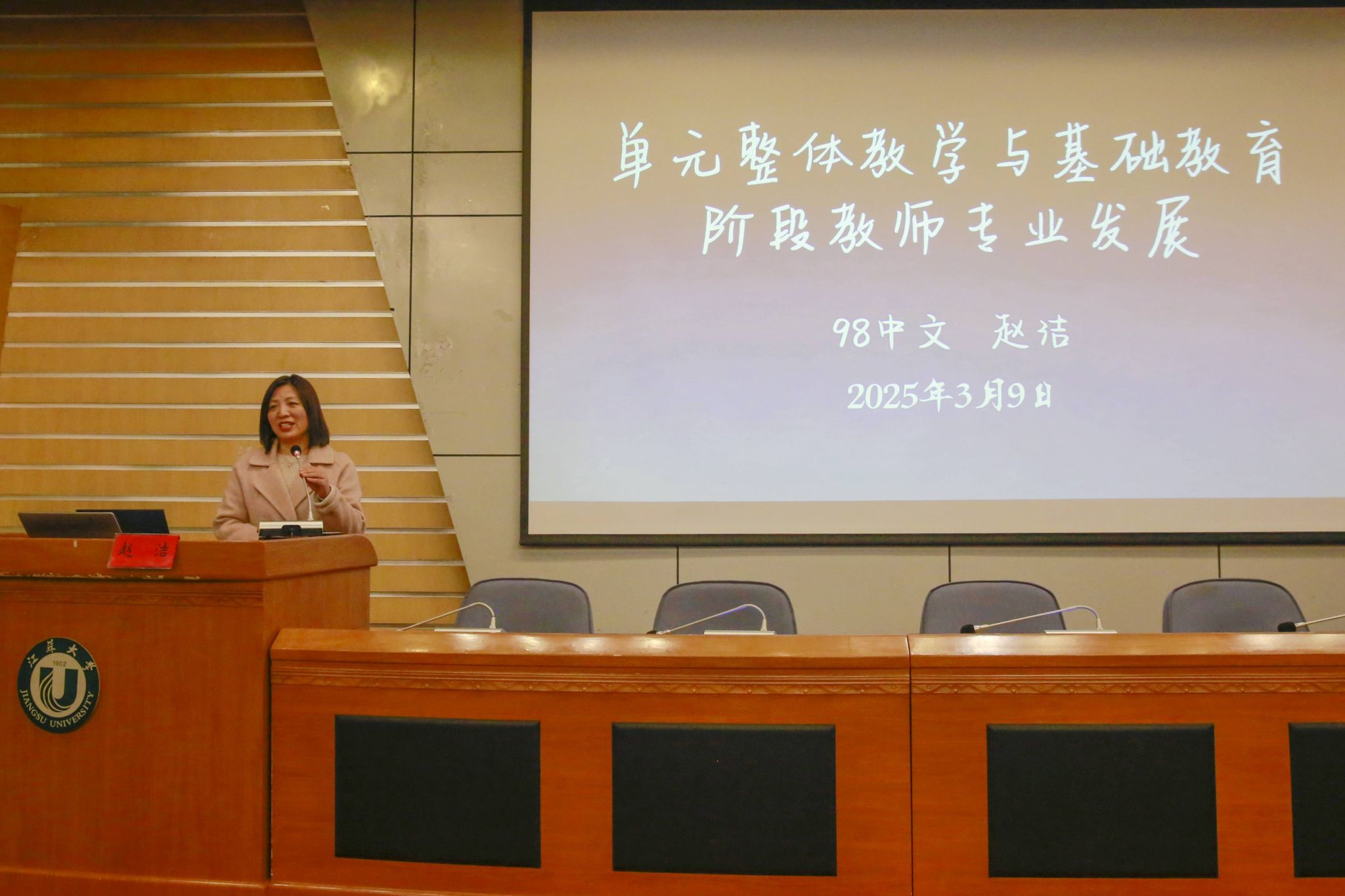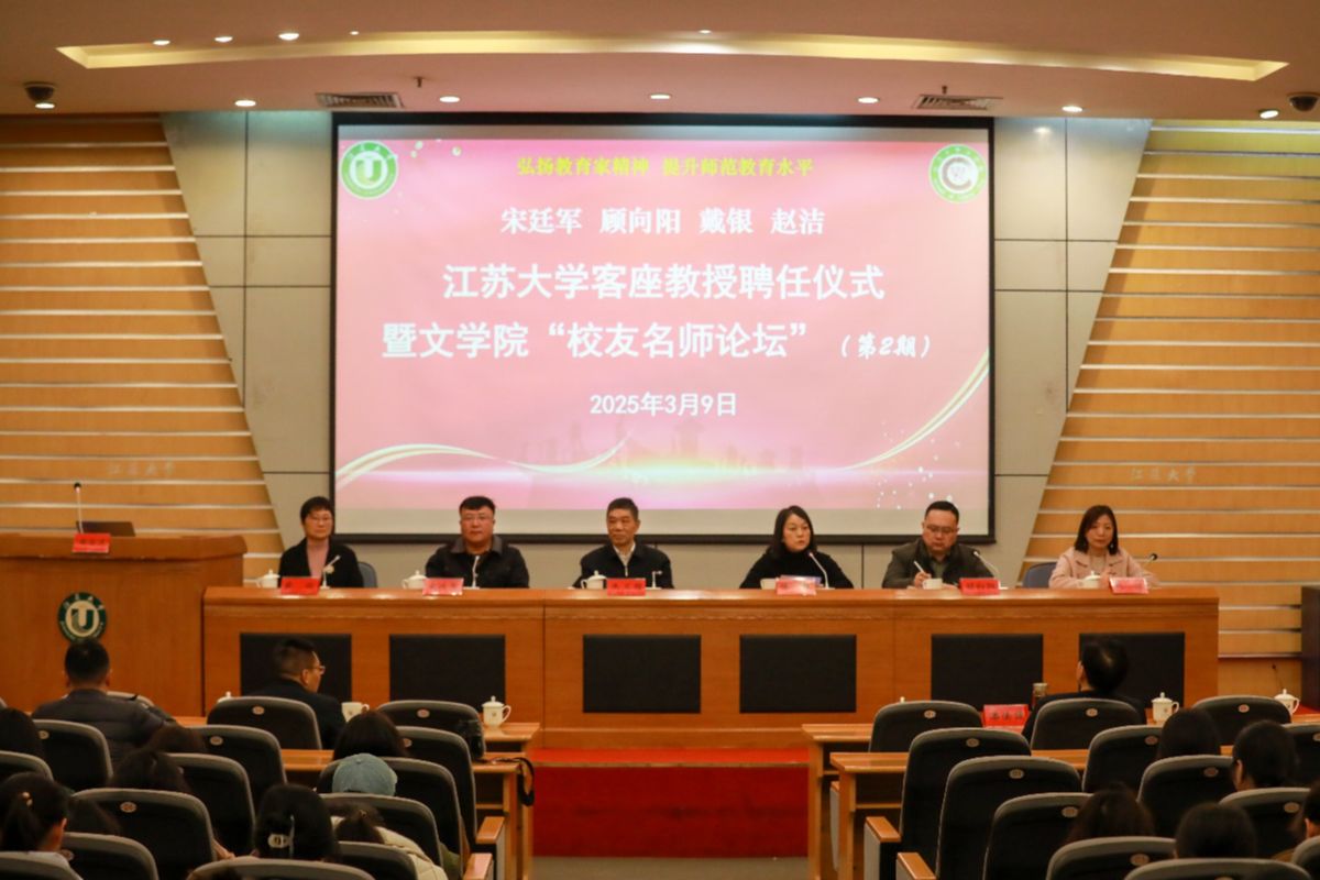 3月9日,球速体育客座教授聘任仪式暨文学院“校友名师论坛”(第二期)在会议中心第一报告厅举行。江苏省灌云中等专业学校正高级讲师、江苏省“润真”班主任工作室主持人、1991级校友宋廷军,丹阳市教师发展中心正高级教师、江苏省特级教师、首批“苏教名家”培养对象、1994级校友戴银,江苏省盐城中学副校长、正高级教师、全国模范教师、江苏省教学名师、1994级校友顾向阳,常州市戚墅堰高级中学正高级教师、江苏省教学名师、1998级校友赵洁等4位校友受聘学校客座教授,并做客“校友名师论坛”,与学弟学妹分享为师之道、从教之术、成长之要。