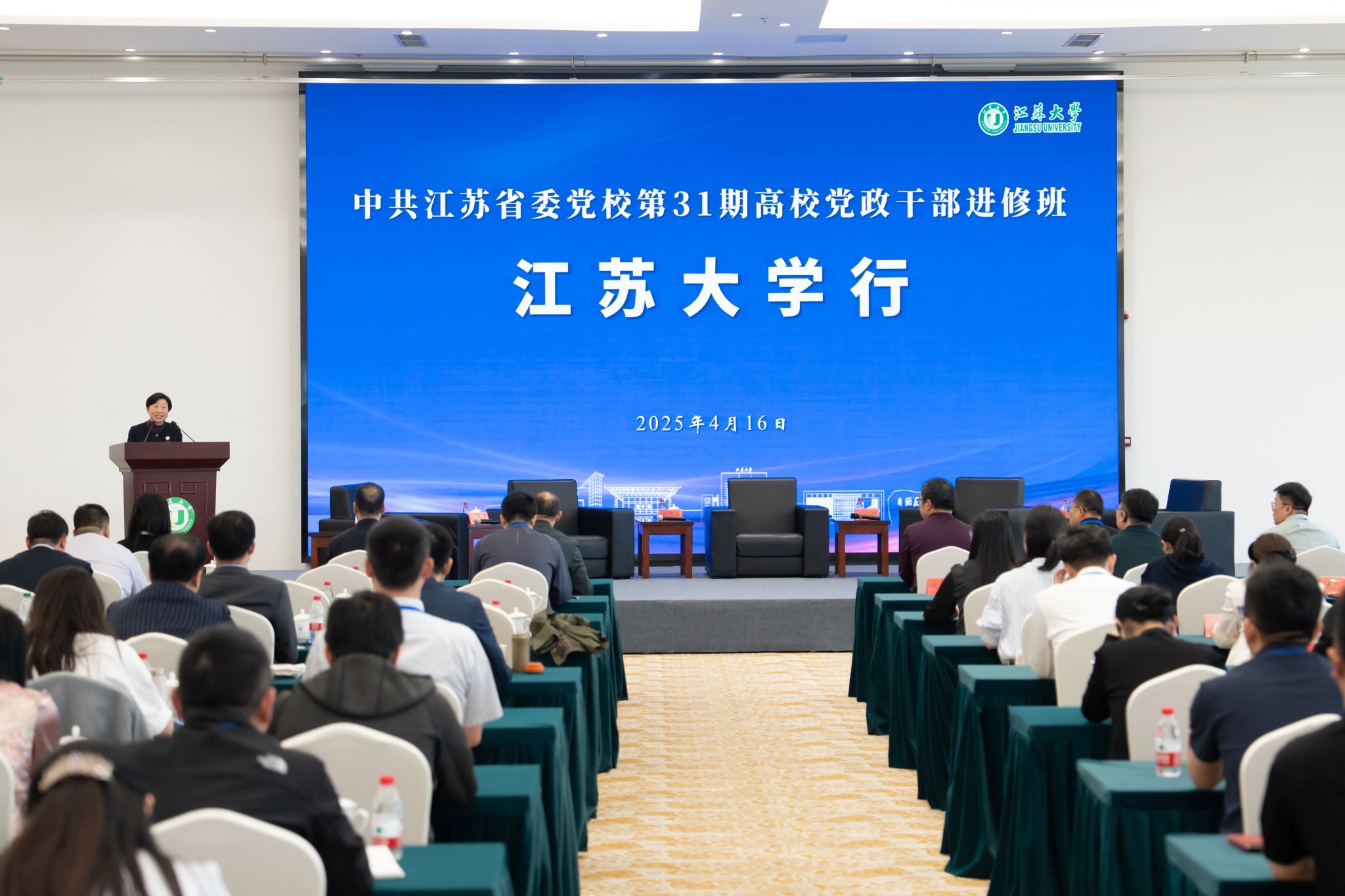 4月16日,中共江苏省委党校第31期高校党政干部进修班全体学员来校调研交流。中共江苏省委党校管干院副院长马贞俊,我校党委副书记张济建,党委常委、组织部部长杨敬江出席活动。交流活动由我校党校常务副校长、组织部副部长王征主持。