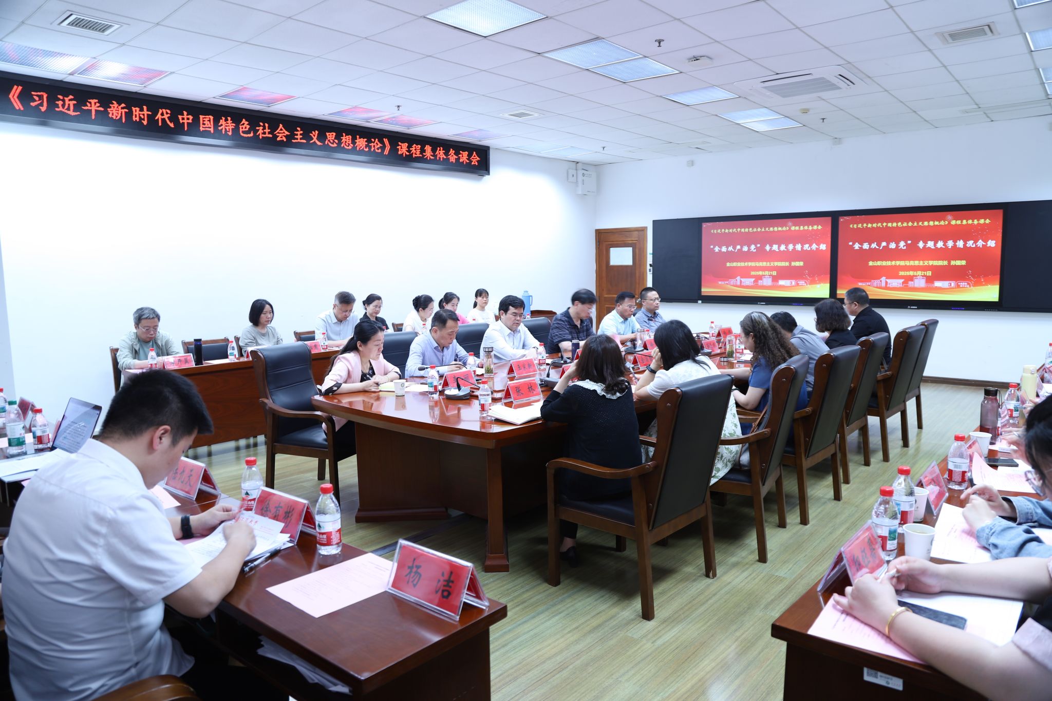 5月21日,我校与金山职业技术学院共同举办了以“中央八项规定精神融入全面从严治党专题教学”为主题的集体备课会。校党委书记李洪波,金山职业技术学院党委书记徐铭、副书记王家新,两校马克思主义学院、团委有关领导及相关课程教师参加活动。