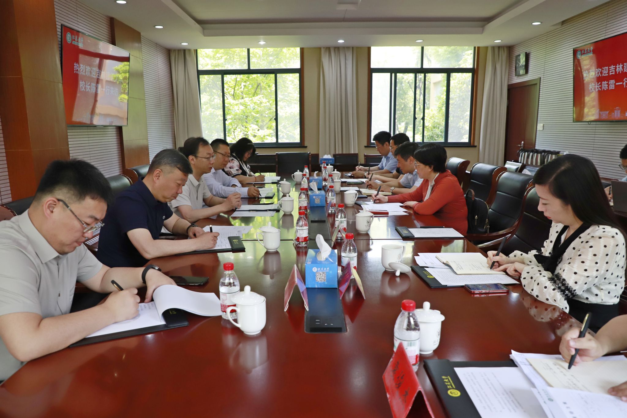 5月29日,吉林建筑大学校长陈雷率队来校交流,校长邢卫红、副校长王景全接待了陈雷一行。