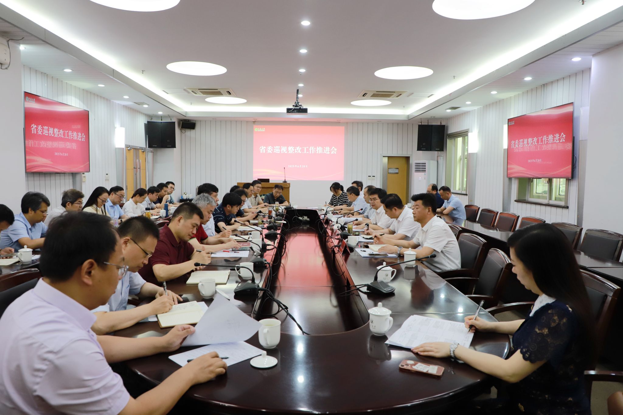 6月20日,校党委书记李洪波主持召开省委巡视整改工作推进会,专题研究部署下一阶段巡视整改任务落实工作。校纪委书记、派驻监察专员杜永春,党委常委、组织部部长杨敬江,党委常委、宣传部部长、统战部部长吴麟麟出席会议。
