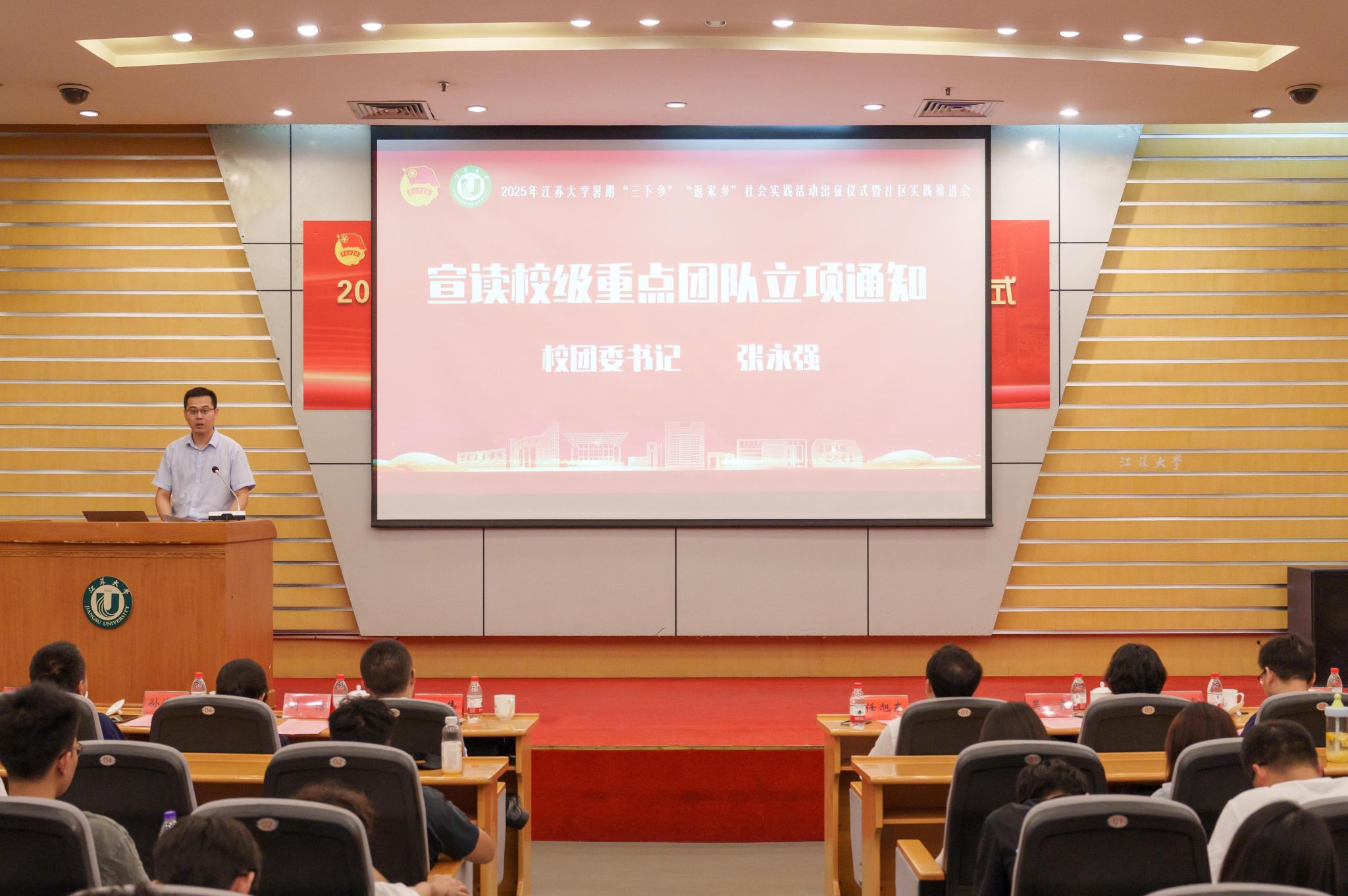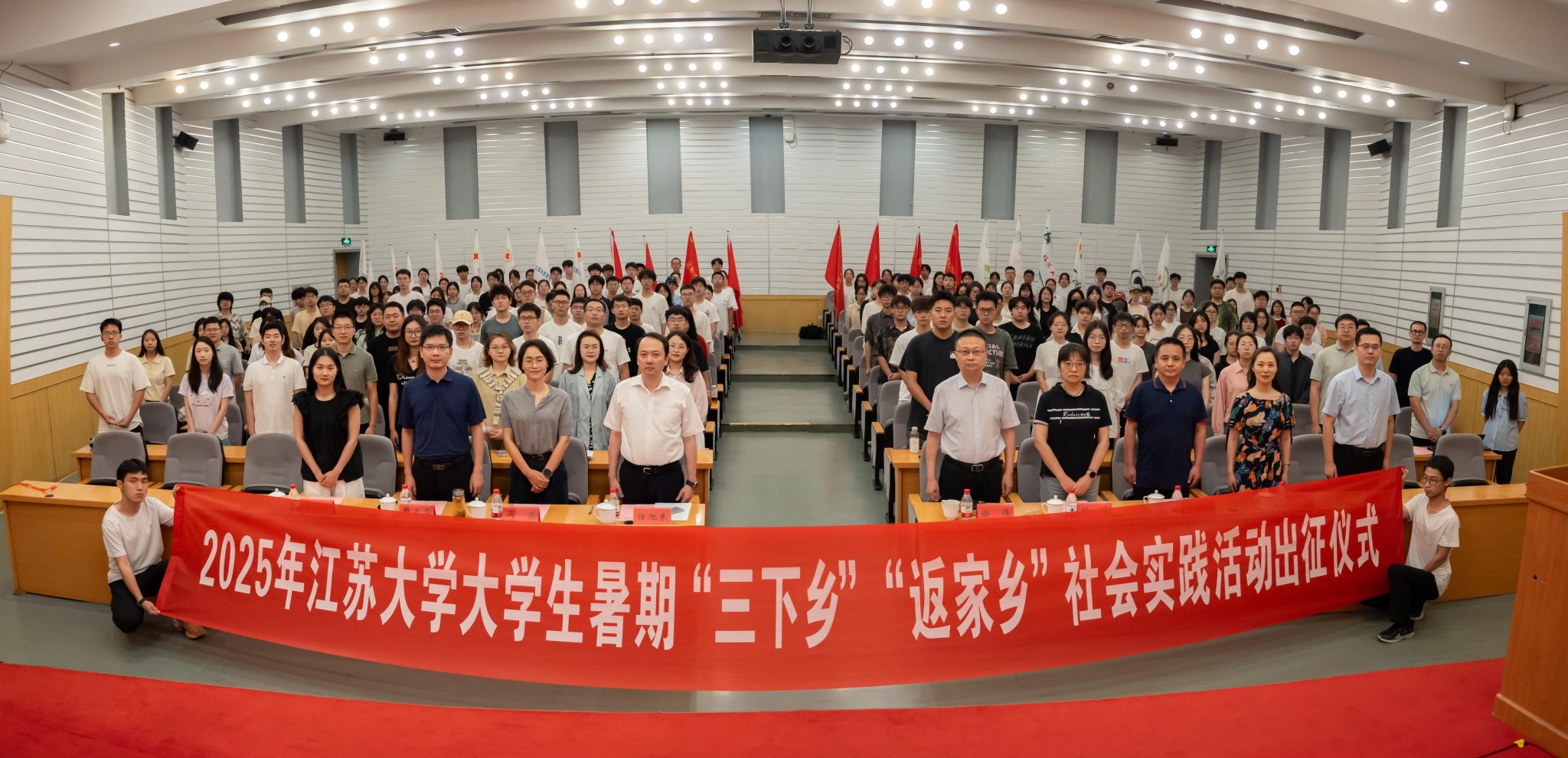 校党委常委、副校长任旭东出席活动,团京口区委、团润州区委,马克思主义学院、党委宣传部、教务处、研究生院、学工处、团委负责人,各二级团组织负责人以及重点实践团队代表参加了出征仪式。仪式由校团委书记张永强主持。