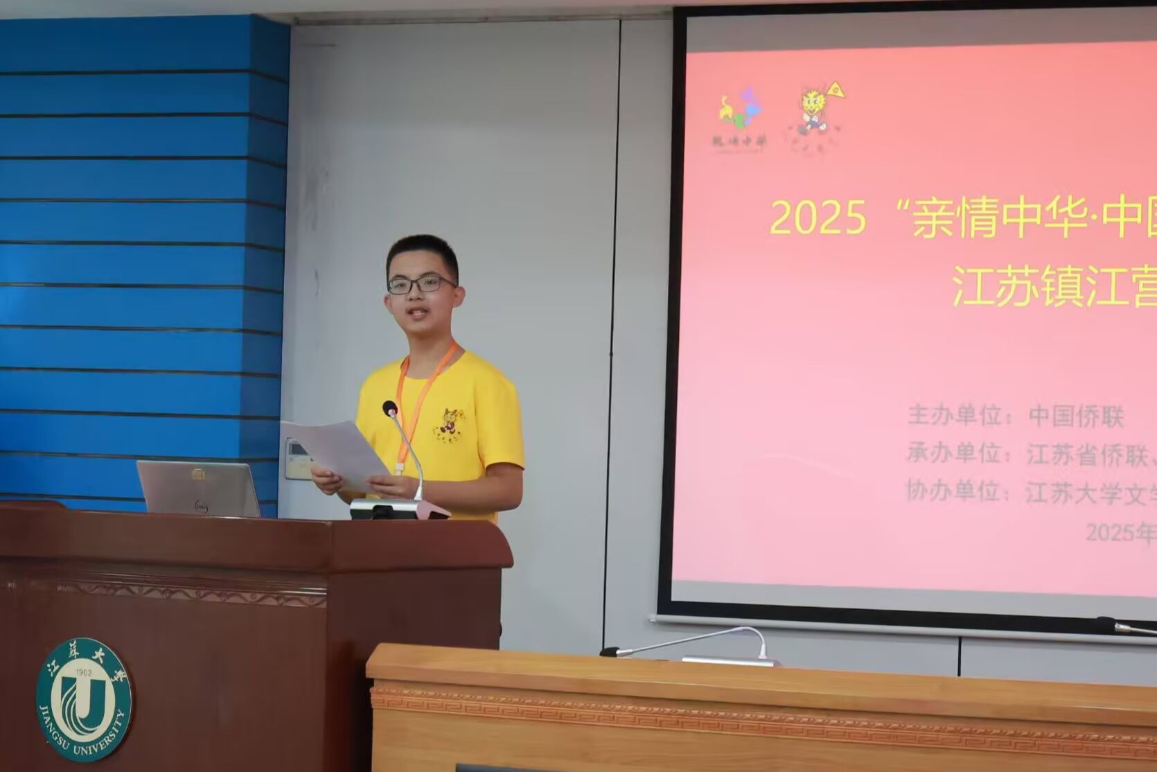 7月17日,由中国侨联主办,江苏省侨联、镇江市侨联承办,球速体育语言文化中心协办的2025“亲情中华·中国寻根之旅”夏令营江苏镇江营开营仪式在我校会议中心第三报告厅举行。来自西班牙、加拿大、菲律宾等国家的36名华裔青少年及领队教师齐聚历史文化名城镇江,开启为期7天的中华文化寻根之旅。