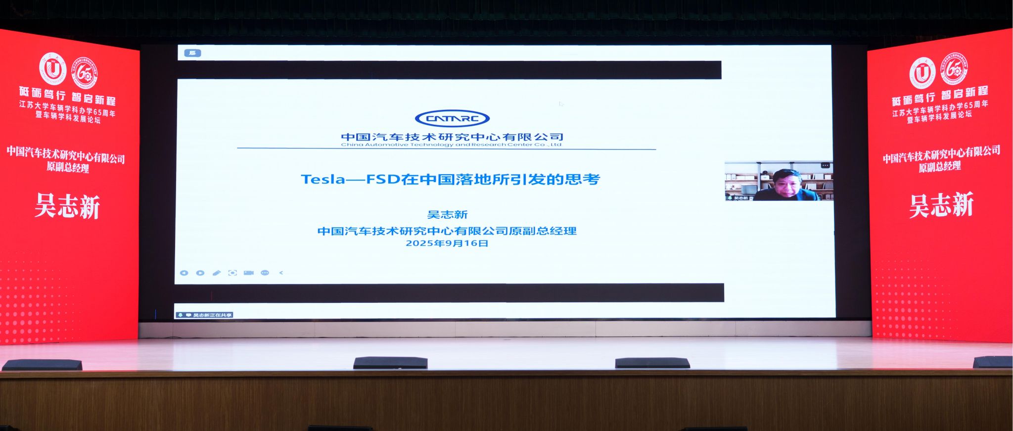 论坛上,工业和信息化部装备工业司原一级巡视员钱明华校友、中国汽车技术研究中心有限公司原副总经理吴志新校友、蔡英凤分别从中国汽车工业的发展现状与展望、Tesla-FSD在中国落地所引发的思考、球速体育车辆学科建设与发展规划等方面作主旨报告。