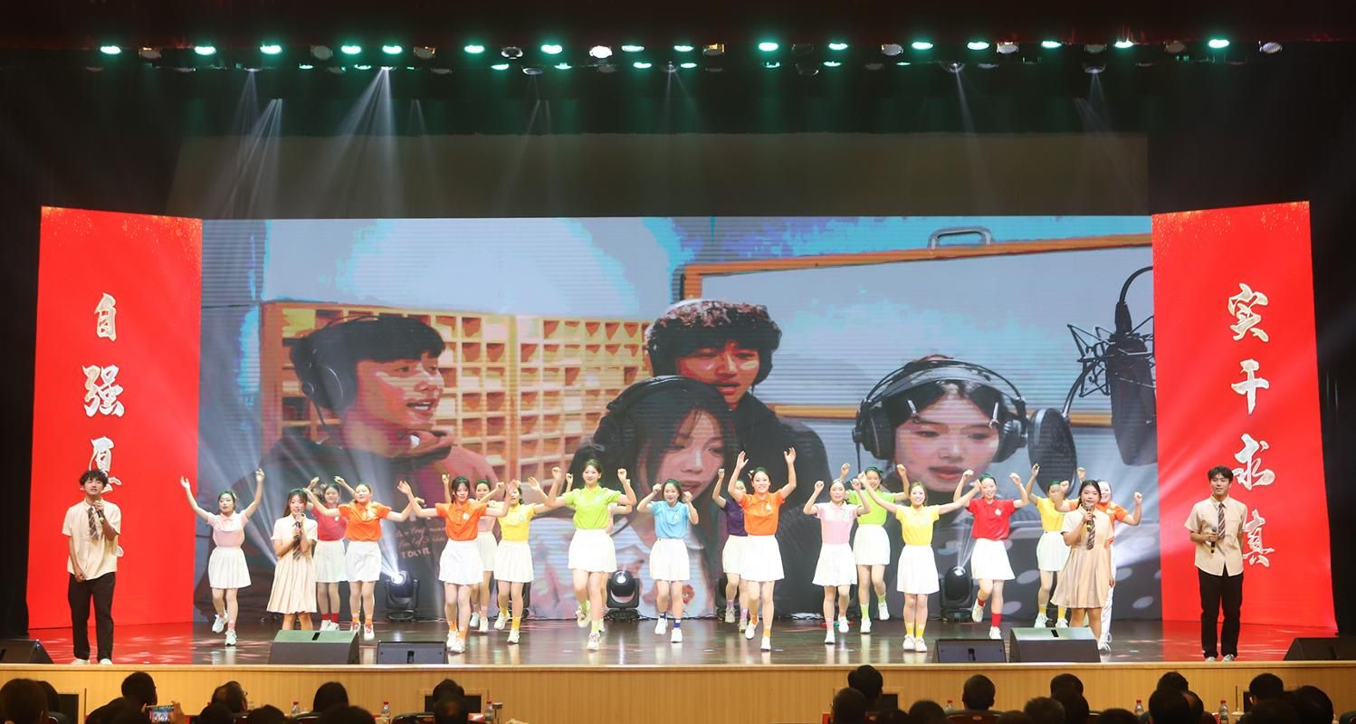 会上,师生还表演了朗诵、歌舞等文艺节目。