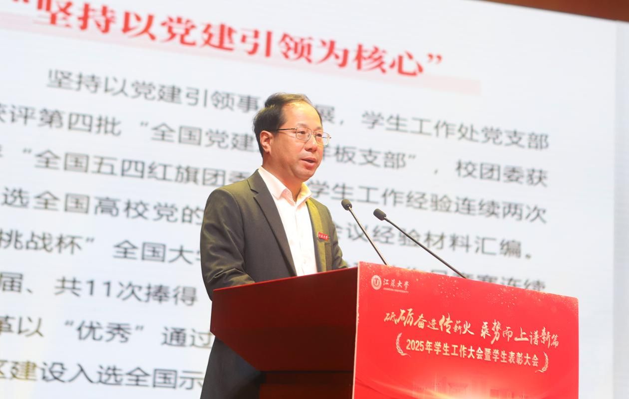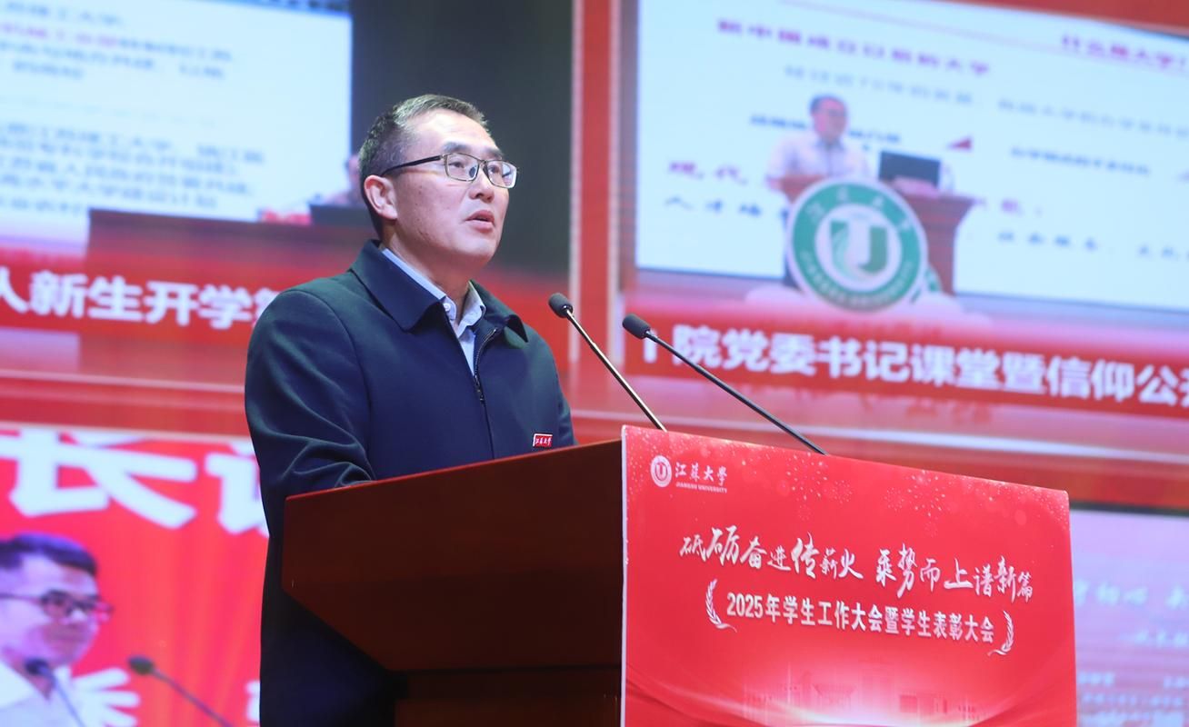 李洪波在大会上发表讲话,代表学校向辛勤耕耘在学生工作一线的同志们致以崇高敬意,向获得表彰的集体和个人表示热烈祝贺,向全校青年学子致以亲切问候。李洪波说,学生工作是落实立德树人根本任务的重要支撑。过去一年,学校学生工作成果丰硕,展现了师生开拓进取、团结奋进的精神风貌。球速体育学子在求知问学、创新实践、服务社会的广阔舞台上奋发有为,涌现出一大批先进典型。李洪波指出,学校正处在“十四五”收官、“十五五”谋划的关键时期,也是奋力推进“双一流”创建的攻坚期。面对新形势新任务,学生工作必须把握新要求、展现新作为,努力为学校奋进一流提供坚强支撑。他强调,今后一个时期的学生工作要把准方向、聚焦重点,以更高标准提升育人实效;要建强队伍、激发活力,以更实举措打造育人铁军;要激扬青春、筑梦未来,以砥砺奋斗书写人生华章。李洪波希望师生以更加饱满的热情、更加务实的作风,扎实奋斗、砥砺前行,共同谱写学生工作高质量发展的新篇章,努力为学校“双一流”创建和特色鲜明高水平大学建设作出新的更大贡献。