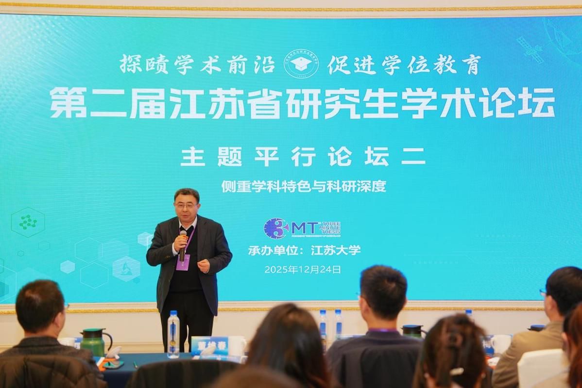 12月24日,由江苏省学位与研究生教育学会主办的第二届江苏省研究生学术论坛在宁召开,我校承办第二平行论坛。论坛采用国际通行的“三分钟论文演讲(3MT)”模式,侧重学科特色与科研深度,来自全省13家博士学位授权高校的63名研究生参加活动。