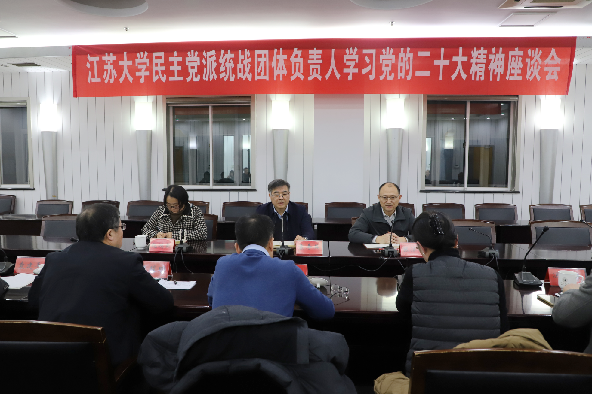12月7日,学校在会议中心第二报告厅召开民主党派统战团体负责人学习党的二十大精神座谈会。校党委书记袁寿其出席会议并讲话。会议由校党委常委、副校长张济建主持。