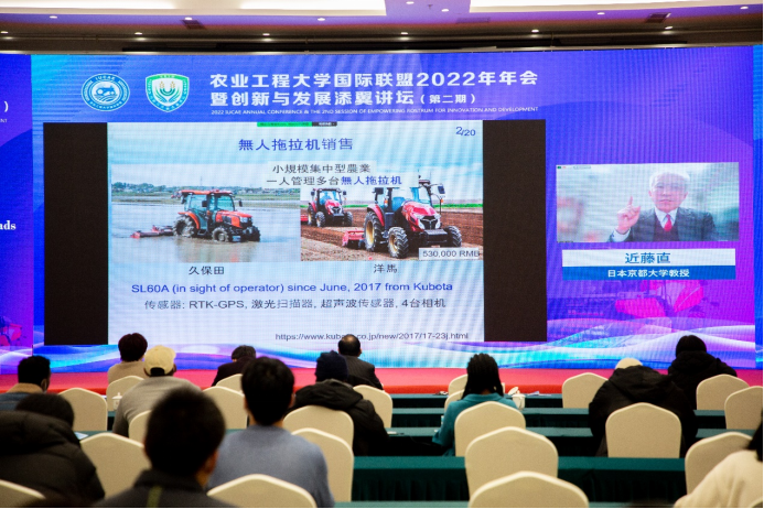 农业工程领域最知名科学家、“日本农业机器人之父”近藤直教授在《小规模智慧农业引领超精准农业》报告中,介绍其在果蔬采摘机器人领域,以及在食品及农产品质量安全评价与智能农业装备开发作出的贡献。
