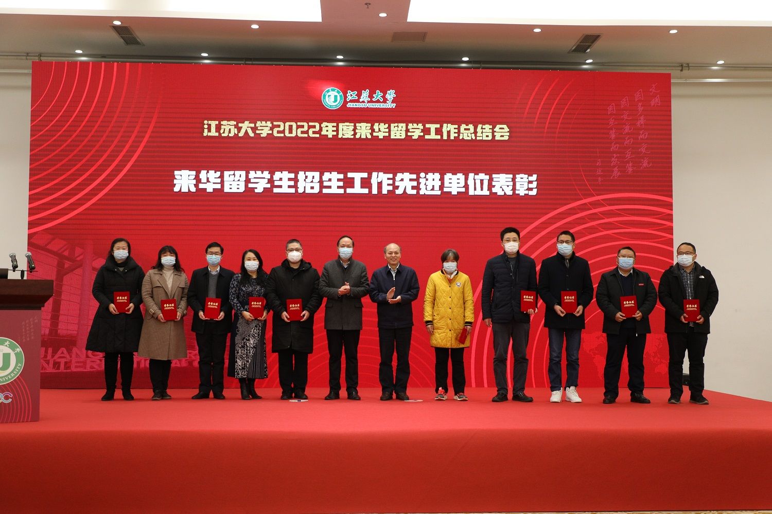 会议表彰了能源与动力工程学院、环境与安全工程学院、计算机科学与通信工程学院、土木工程与力学学院、管理学院、财经学院、文学院、医学院、药学院、生命科学学院等2022年校来华留学生招生工作先进单位,颜晓红和赵玉涛为获奖单位代表颁奖。环境与安全工程学院、药学院、医学院和管理学院作来华留学工作先进经验交流。