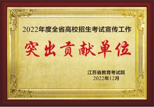 近日,由江苏省教育考试院组织的2022年度全省高校招生宣传工作考核结果揭晓,我校荣获“突出贡献单位”称号。