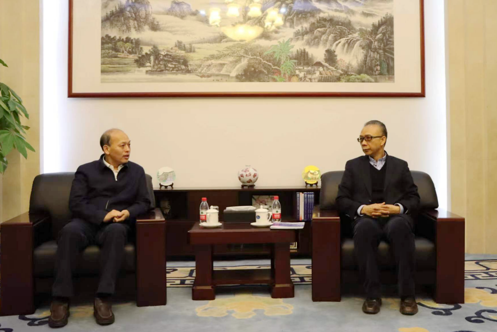 1月16日,中国国际问题研究院院长徐步在北京会见校长颜晓红、副校长赵玉涛一行。