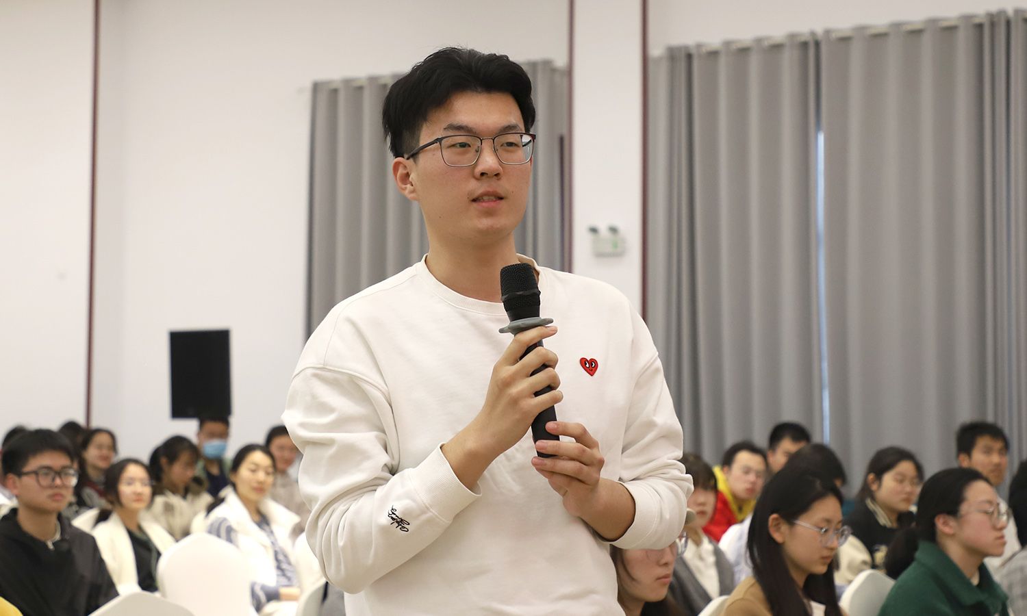 报告会上,魏巧向师生讲述了让“扫码种田”成为现实的创业故事。2017年4月,魏巧和丈夫孙振中分别辞去中科院和北京大学的工作,从城市回到农村。魏巧夫妇在创业路上经历了半夜摸黑到田里放水、刚播下的稻种被鸟儿吃掉、热得中暑住院等重重困难后,意识到科技种田才是他们的长处。要将科技注入大田,他们选择的切入点是将地块数字化。借助遥感技术,细分农场田块进行编号,生成二维码,对应每个田块的定位、土壤养分、墒情等信息,实现对农机的自动调度,变量施肥、精准用药。