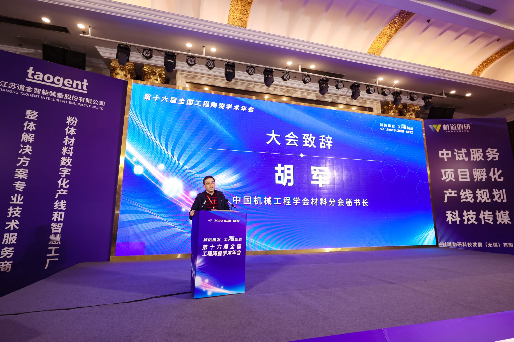 本次年会由中国机械工程学会材料分会、球速体育、江苏省硅酸盐学会联合主办,材道助研科技发展(无锡)有限公司承办。4月15日,中国工程院院士、上海硅酸盐研究所教授董绍明,工程陶瓷专业委员会理事长肖汉宁、中国机械工程学会材料分会秘书长胡军、中科院上海高等研究院院长黄政仁、我校副校长赵玉涛等出席开幕式,开幕式由我校材料学院院长乔冠军主持。