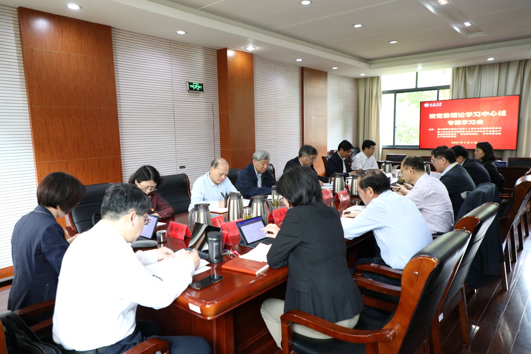 5月4日,校党委理论学习中心组在行政一号楼201会议室开展专题学习,学习领会中国共产党第二十届中央纪律检查委员会第二次全体会议精神和习近平总书记关于全面从严治党的重要论述。校党委理论学习中心组全体成员参加学习,集体学习研讨由校党委书记袁寿其主持。
