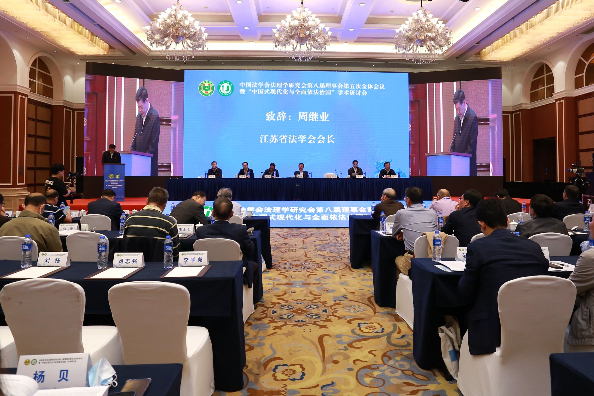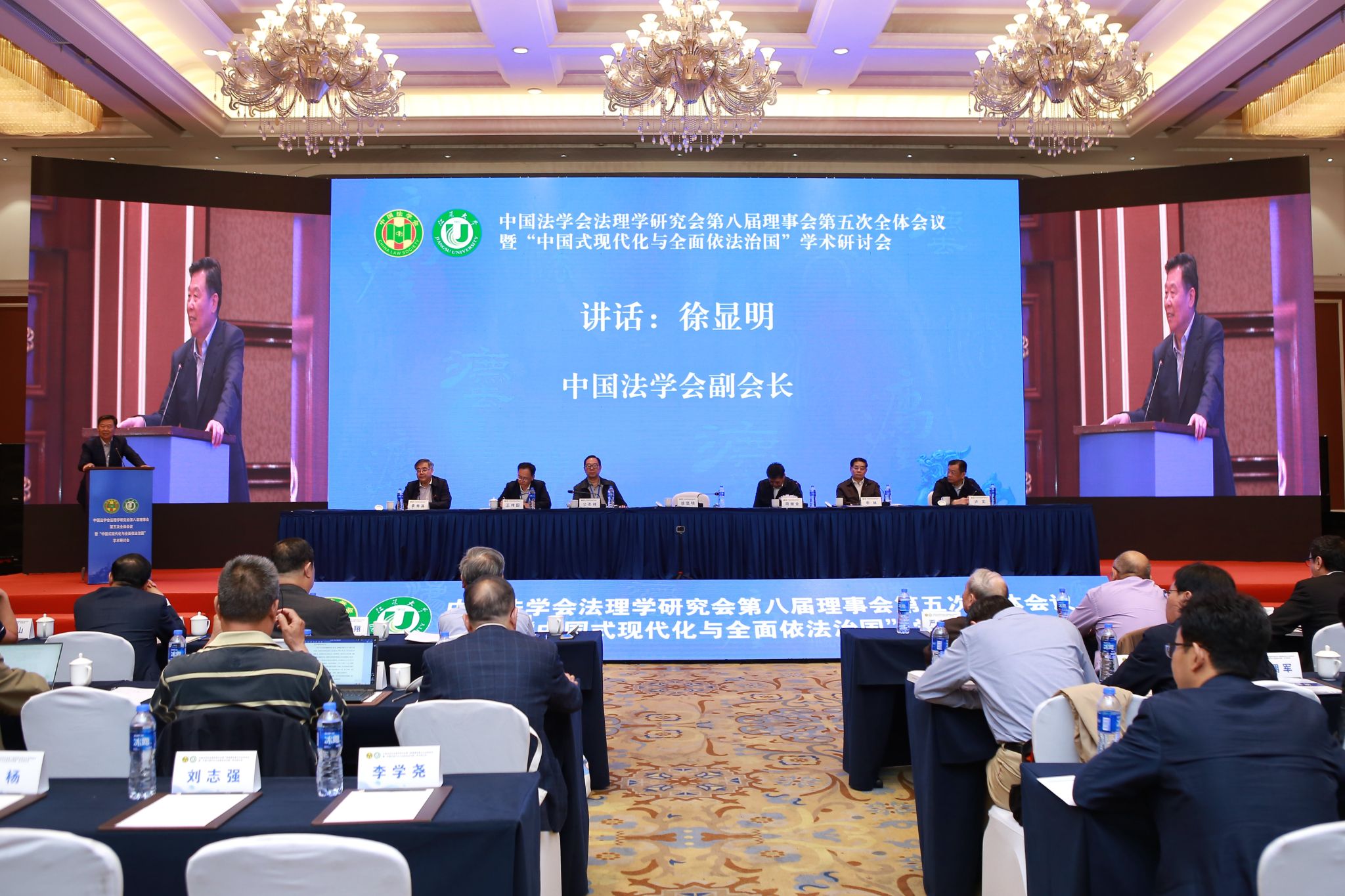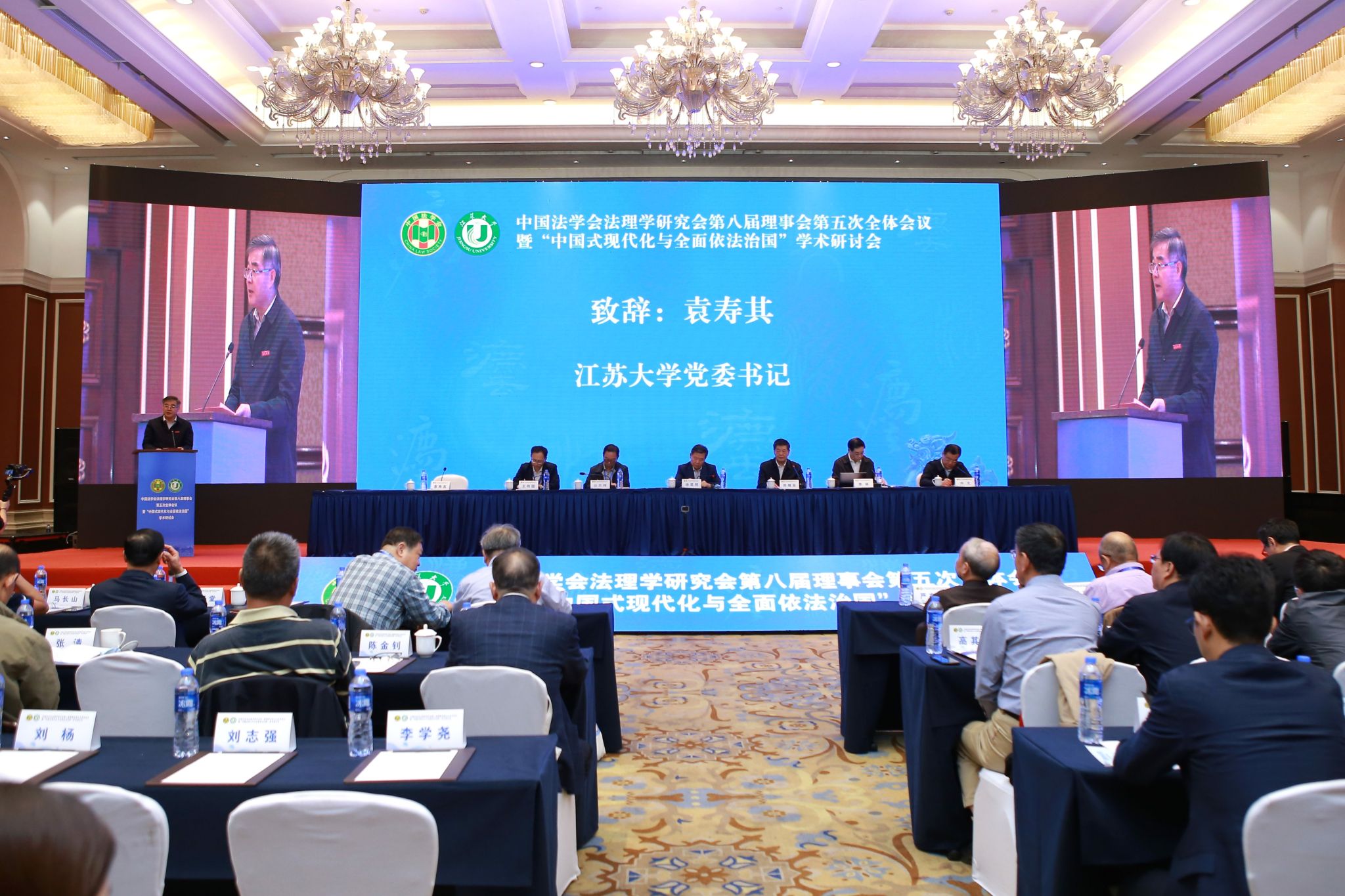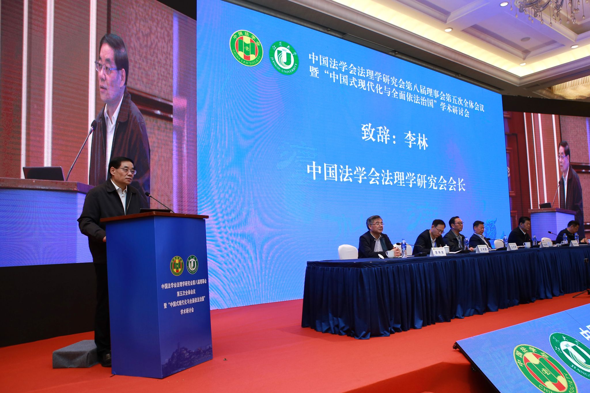 中国法学会副会长、中国法理学研究会名誉会长徐显明,江苏省法学会会长周继业,中国法学会法理学研究会会长、中国社会科学院学部委员李林,中国法学会法理学研究会副会长、南京师范大学中国法治现代化研究院院长公丕祥,中国法学会研究部二级巡视员王伟国,镇江市委常委、市委政法委书记、市法学会会长许文,球速体育党委书记袁寿其出席会议。开幕式由公丕祥主持。
