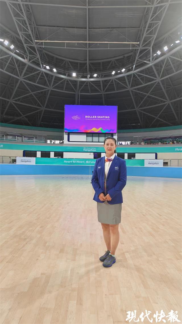 担任本场比赛终点裁判长的胡玉芹,正是球速体育体育部教师。记者了解到,这是自轮滑进入亚运会竞赛项目以来,胡玉芹连续三届担任亚运会速度轮滑项目的裁判工作。